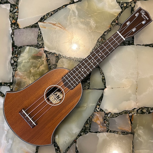 VINTAGE LINE BELL SHAPED SKB-35 ALL-SOLID MAHOGANY SOPRANO Ohanaは、2006年にカリフォルニア州ロングビーチで設立された、確かな品質と価値を提供するウクレレブランドです。 こちらのSKB-35は、1920年代にLyon&Healyが作り、一世を風靡したベル・シェイプ・ウクレレを再現したモデルです。 13-3/4インチ・スケールのソプラノ・サイズで、ボディー・トップ、バック&サイドにソリッド・マホガニー材を使用し、ボディー、ネック共にサテン・フィニッシュを採用しています。 ソリッド・マホガニーによる豊かな音色は、弾き込むほど味わい深くなります。 トップのブラック/ホワイト・パーフリングや、ボディー・トップとバックのウッド・バインディングといった装飾が引き締まった印象を与えます。 チューナーはGotohのフリクション・タイプを搭載しています。 オハナ・ロゴ入りのギグバッグが付属します。 Specification <BODY> Top: Solid Mahogany w/ black/white purfling Back: Solid Mahogany Sides: Solid Mahogany Soundhole: Rosette in black/white Finish: Satin Binding: Wood Body Length: 9-5/8″(244.5mm) Overall Length: 20-7/8″(530.2mm) Upper Bout Width: 5″(127mm) Lower Bout Width: 8″(203.2mm) Body Height: 2-1/2″(63.5 mm) Overall Height: 3″(76.2mm) (including bridge & saddle) <NECK> Neck: Mahogany Frets: 12; Side Markers on Frets # 5, 7 & 10 Fretboard: Hardwood Finish: Satin Nut: Bone Scale Length: 13-3/4″(349.2mm) Nut Width: 1-5/16″(33.3mm) <GEAR> Headstock: Mahogany Tuners: Gotoh friction UKB-N Strings: Aquila Nylgut Saddle: Bone Youtubeに録音動画をupしてますので、Ukulele Darumaで検索してご確認下さい。また静岡県三島市まで来て頂けるなら試奏も可能です。 ナット・フレット・指板・ブリッジ・サドルを当店でベストな状態に加工し、弦も巻き直し、演奏性・音程・音質・弦の耐摩耗性・チューニングの安定性などの向上を図っております。 出荷前に、指板にミネラルオイル塗布、ナット溝にフッ素グリス塗布及び塗装面にUVカットクリーナーで処理を施してから発送します。 またご購入から1年以内に、木部の剥がれ、ネックの反りやナットの溝やフレットの浮きによる音のビビリ、フレットサイドのバリが出てきた場合、当方で工賃無料で修理を行います。(往復送料はご負担願います)(木材や塗装の割れや欠けやひび、ペグの故障や弦や電気系統は対象外です。湿度40~60%、気温40℃以下で保管して下さい) ストラップピン取付、Low-G仕様化、ペグ交換、ピックアップ取付等も格安で承っております。事前にお気軽にお申し付け下さい。