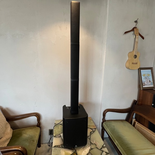 この値段で、200Wのコラム型アンプという、とてつもないハイコスパなアンプです。 リバーブがショートディレイなのが唯一惜しい点ですかね。 音量も音質も遠達性も素晴らしい仕事をしているアンプです。 ミキサー内蔵で、これ一台でライブから学校、地域行事に使えるコラムスピーカーです。 スピーカーとウーハーを分解可能で、軽量(13.4kg)な持ち運びに便利。一台でも充分な音量が得られる200W定格なので、教室などの小規模の会場に最適です。8インチウーハー、2.75 インチスピーカー4基による迫力のサウンドを実現。2BAND EQ をそれぞれに搭載した2ch のコンボ端子インプットを搭載し、マイクとギター、マイク二本など幅広いシチュエーションでご使用いただけます。 音響製品に馴染みのない方に寄り添う、日本語表記のコントロールパネルを採用しました。 また、2 台シンクロで使用可能で、カフェほどの広さの中規模会場もカバー。モニター出力切り替え機能によりステレオ、モノラルいずれでも使用可能です。また、Bluetooth対応で、スマートフォンなどを繋いで音楽をかけることも可能です。さらに、スマートフォンなどの充電用のUSB電源端子を装備しているので、音源の充電切れなどの心配もありません。また、コラムスピーカー部は1~3台で自由に数を決められるので、高さが出せない時などにも便利にご利用いただけます。 1台じゃ心許ないとき、ステレオで臨場感を演出したい時などにXLRケーブルで繋ぐことで、リンク使用が可能! ステレオ使用はもちろん、モノラルも選択可能で、行事などで、音に違いが出ないような使用方法も可能です カホンバッグ(CJB-2DLX)(別売)に収納可能! 注意 仕切りがないため傷がつく可能性はあります。リュックストラップとショルダーストラップは重量的に耐えれません。必ず手持ちの取手を使用してください。 スペック タイプ:ミキサー内臓ポータブルコラムスピーカーPAシステム SUBウーハー:8"x150mm40OZ コラムスピーカー:2.75"x4 アンプ/パワー:Class D / 400W 出力(RMS/Peak)]SUB:120W/240W: TOP:80W/160W(定格/ピーク) エフェクト:Reverb Bluetooth:Bluetooth 4.0 stereo TWS 周波数特性:45Hz-19KHz 最大SPL (peak):115dB(ピーク) 保護回路:ShortCircuit,Over-Current,Limiter,Overtemp,Softstart コントロール:主音量(MASTER VOLUME),CHANNEL 1,2 VOLUME(チャンネル1,2音量),ラインマイク切り替え、Bluetooth VOLUME(音量),TREBLE BASS EQ(高音、低音) SUB(ウーハー音量) REVERB(リバーブ量) インジケーター:電源、リミッター、ピーク 冷却機構:ファン(空冷) SUBウーハー接続端子:Mic[XLR]/Line[1/4"モノラル標準フォン]入力(コンボ端子)x2,3.5mmステレオミニ入力x1 RCA入力x1 XLR出力X1(リンク用途) コラムスピーカー接続端子:Custom Made multi pin connector キャビネット素材:ABS 寸法:SUB:D340xW280xH375(mm) アレイユニット:D80xW90xH390(mm)[1つ当たり] 視聴角:水平30°、垂直100° 最大高:1530mm 総重量:13.4kg パッケージサイズ:390x430x465mm パッケージ重量:15.2kg ※こちらのアンプはメーカーから直送させていただきます