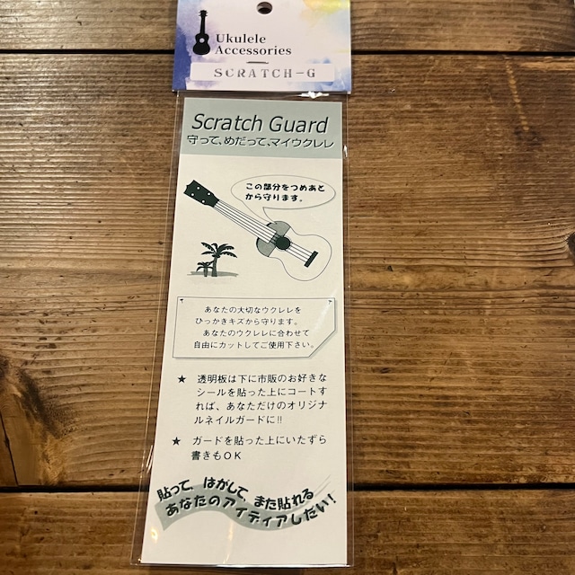 ウクレレの肩部分に貼り付けるキズ防止用の透明シールです。 あなたのウクレレを引っかき傷から守ります。 あなたのウクレレに合わせて 自由にカットしてご使用下さい。 ★ 透明板は下に市販のお好きな シールを貼った上にコートすれば、あなただけのオリジナルネイルガードに!! ★ ガードを貼った上にいたずら書きもOK 貼って、はがして、また貼れる あなたのアイディアしたい!