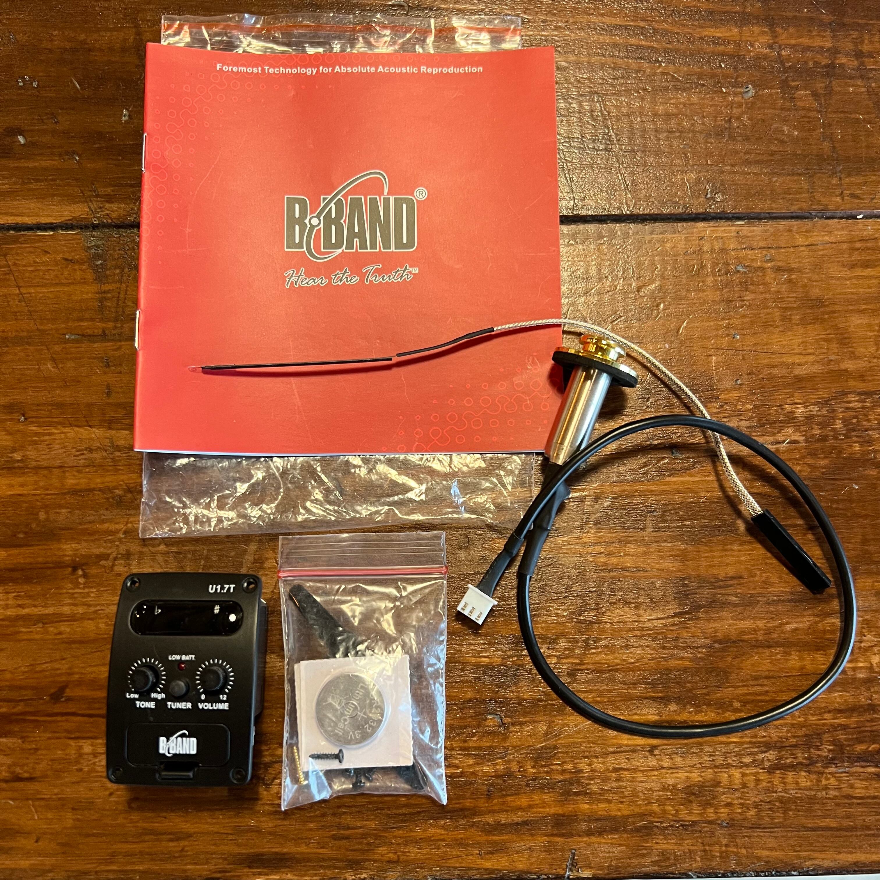注意! UST ピックアップを取り付けた後、出力が非常に高くなる ことがあります。これは、B バンド プリアンプの入力をオーバー ドライブし、歪みを引き起こすほどです。サドルの圧力により、UST の 出力は 1 ~ 3 日で低下します。