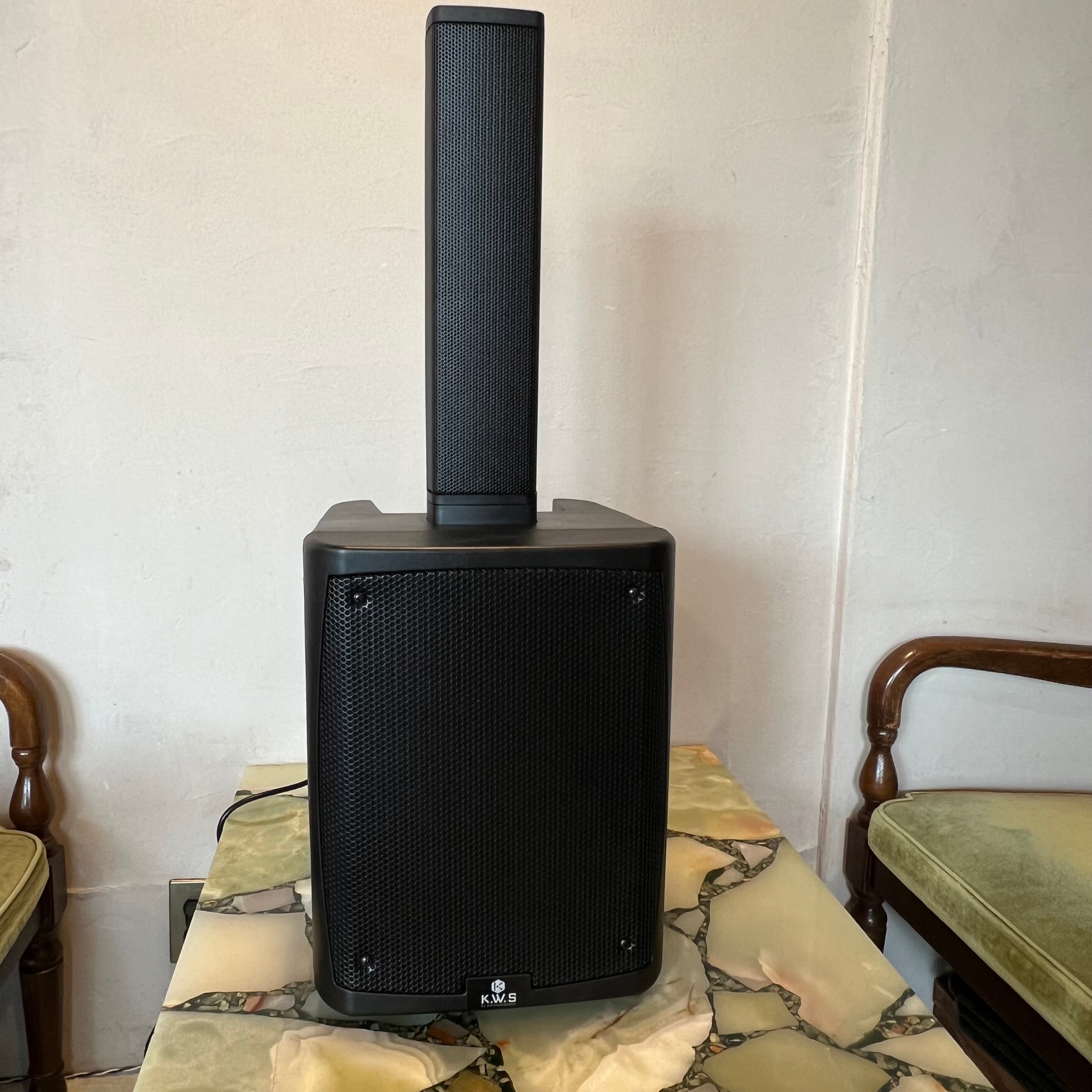 ミキサー内蔵で、これ一台でライブから学校、地域行事に使えるコラムスピーカーです。 スピーカーとウーハーを分解可能で、軽量(13.4kg)な持ち運びに便利。一台でも充分な音量が得られる200W定格なので、教室などの小規模の会場に最適です。8インチウーハー、2.75 インチスピーカー4基による迫力のサウンドを実現。2BAND EQ をそれぞれに搭載した2ch のコンボ端子インプットを搭載し、マイクとギター、マイク二本など幅広いシチュエーションでご使用いただけます。