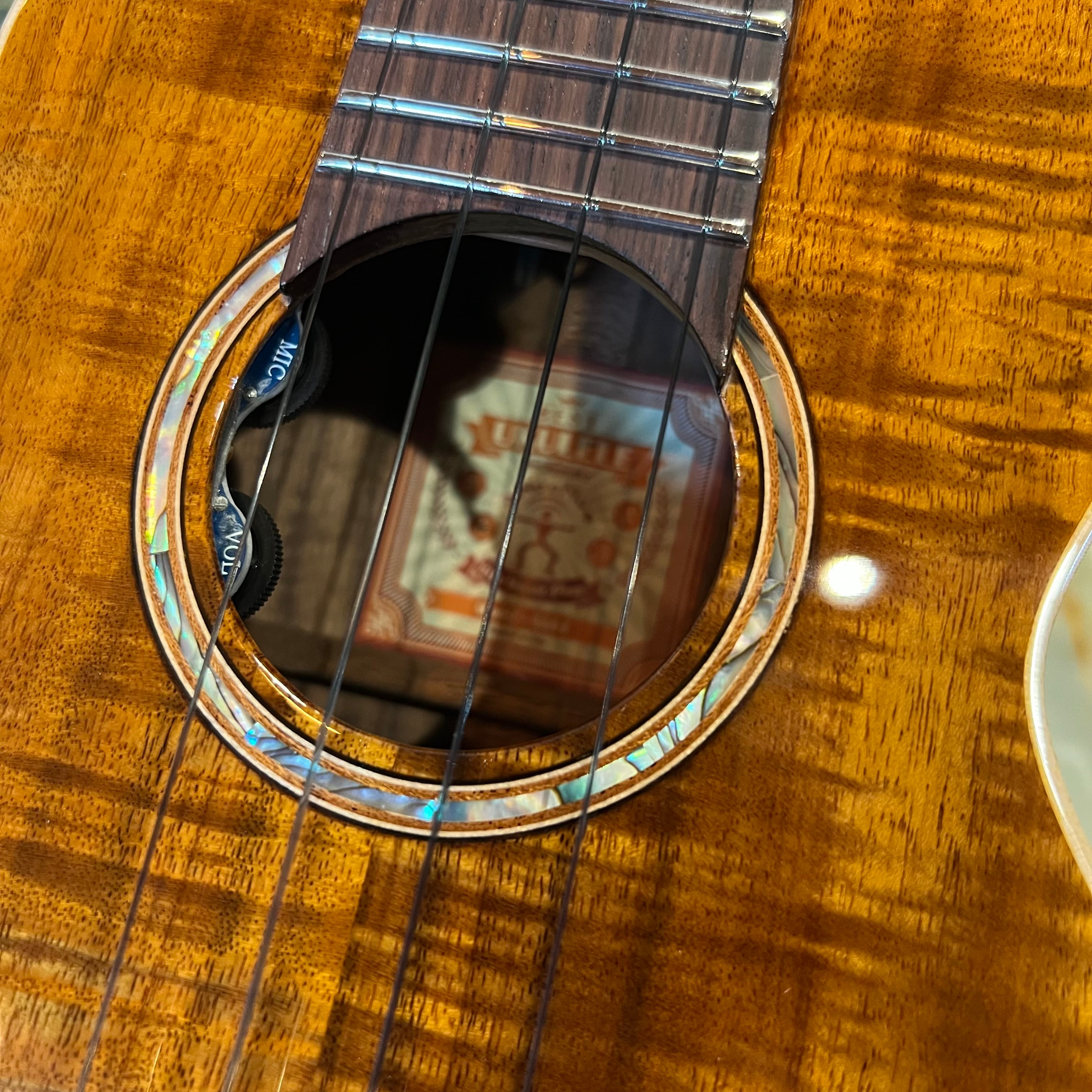日本製最高級ペグのGOTOH UPTを採用し、艶アリのグロスフィニッシュ、アバロン(鮑貝)のサウンドホールロゼット、メイプル材のTop&Backのバインディングなどルックスも豪華です。