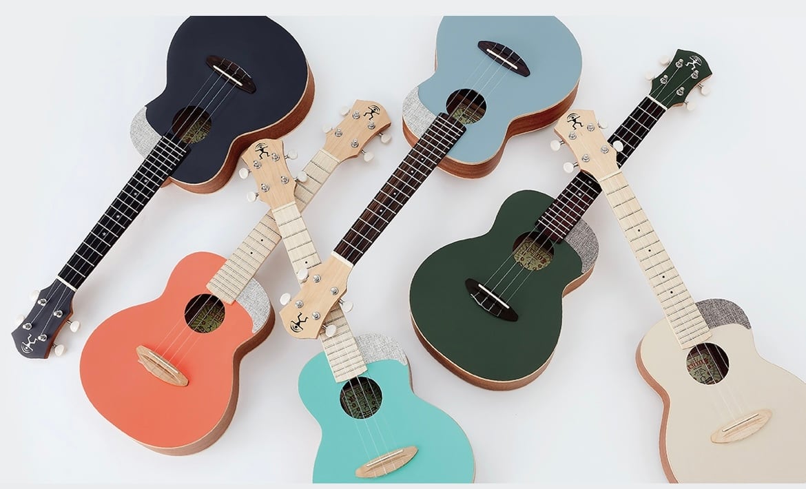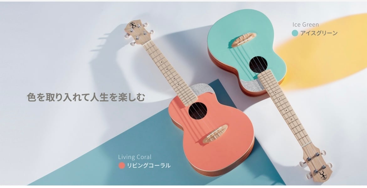 こちらはPOPなカラーリングにピックガードを装着し、ソリッドスプルーストップによる豊かな鳴りが特徴のウクレレです。