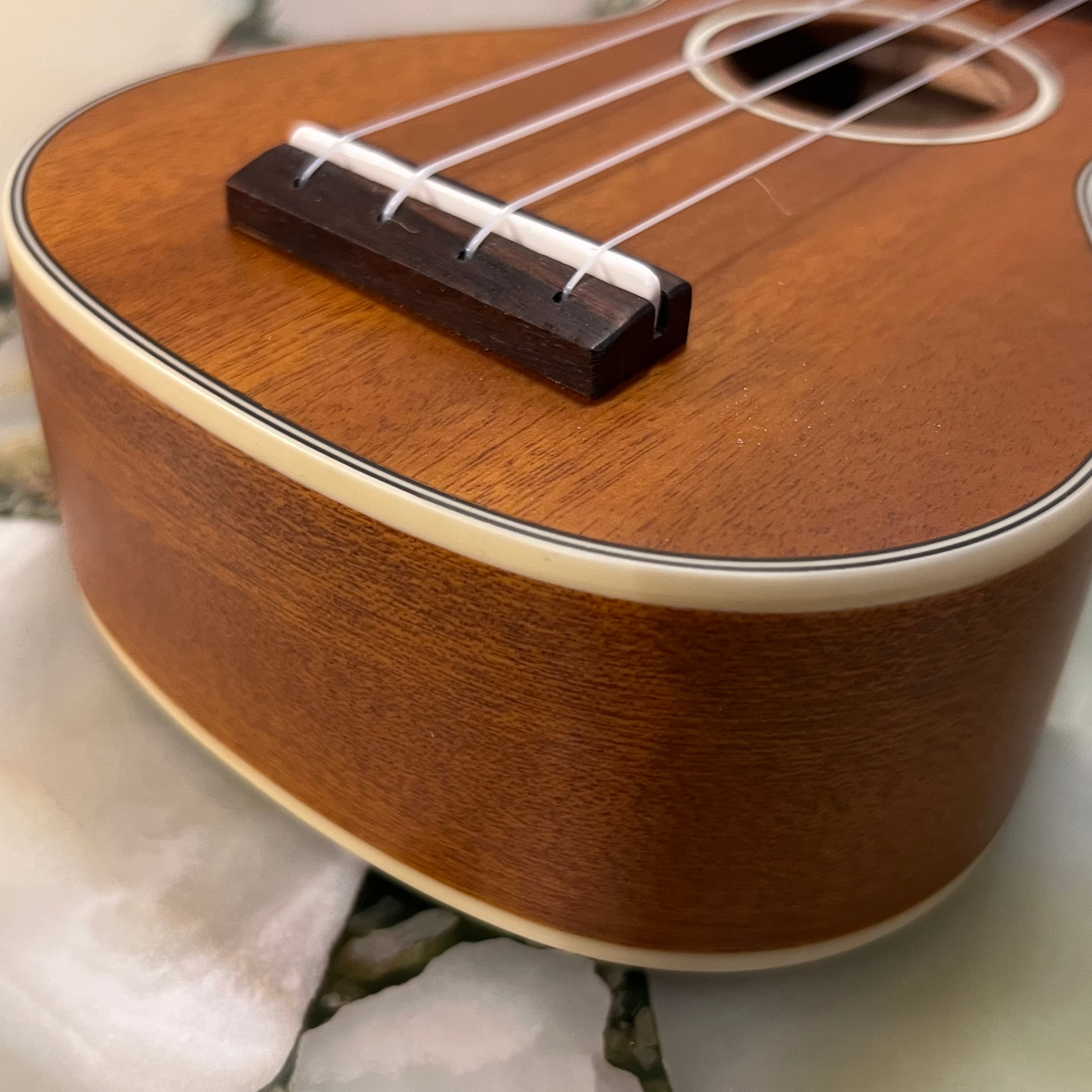 全長17インチ (431.8mm) のオール単板マホガニー・ボディーにクリーム・バインディング装飾を施した、サテン・フィニッシュのウクレレです。