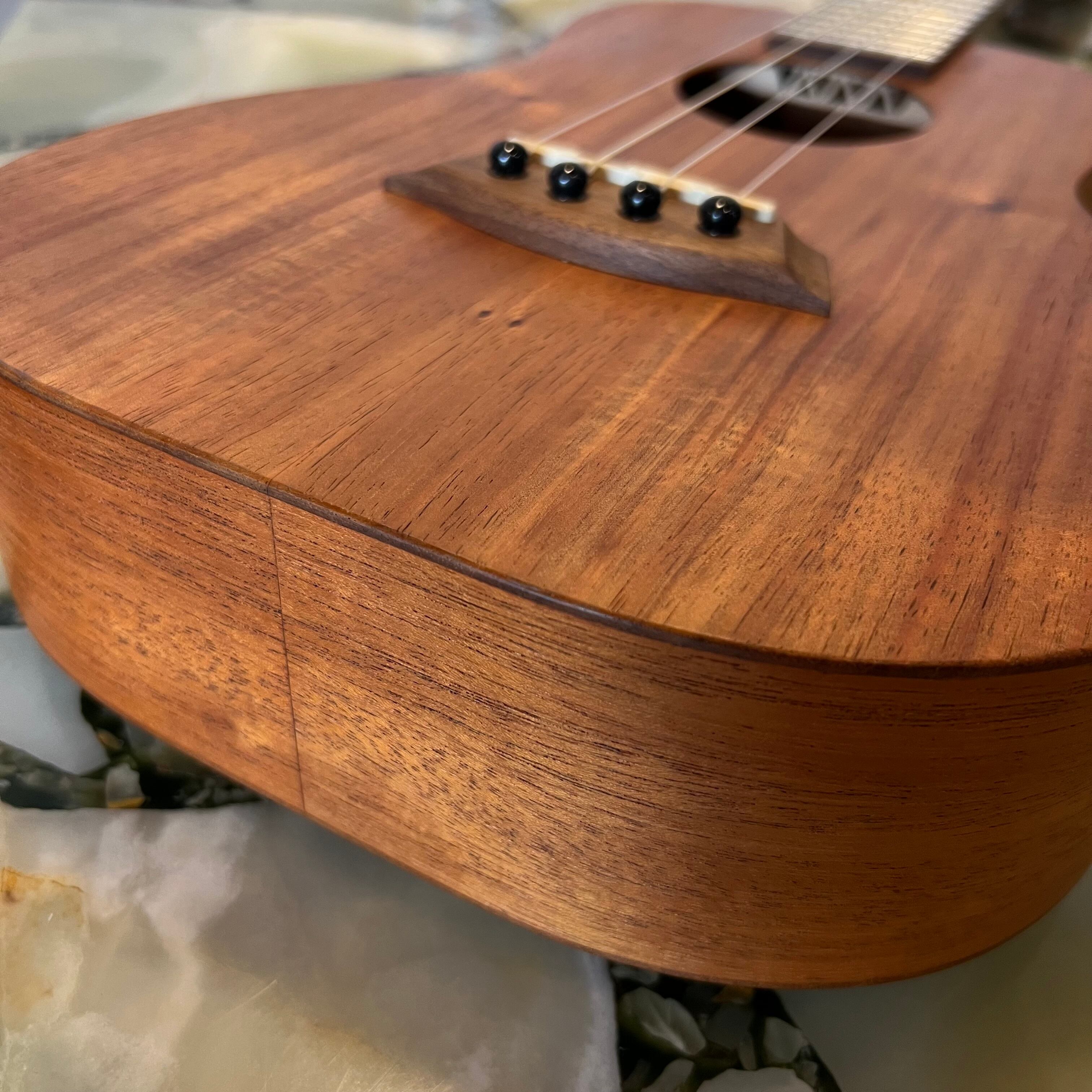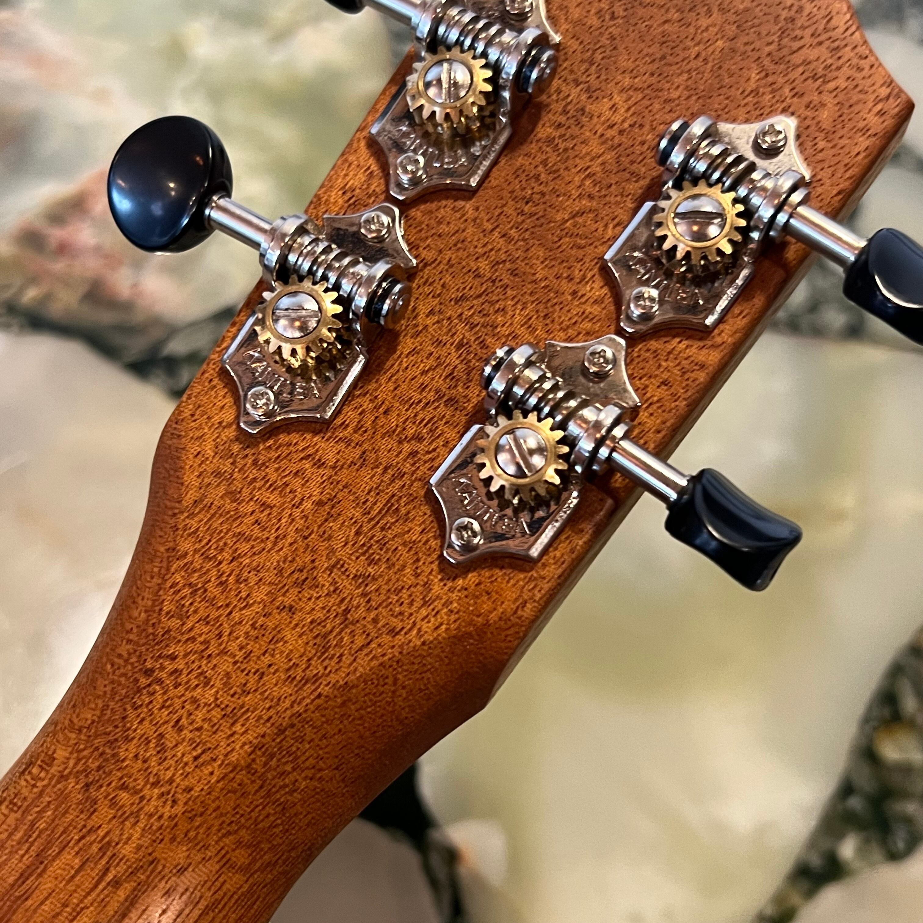 こちらは、種類の異なる木材を組み合わせることでミドルグレードながらもKanile'aらしいサウンドを実現したOHAシリーズ。ブレイシングはKanile'aのマスタールシアーJoe SouzaによってデザインされたTRU-RブレーシングをベースにOHAシリーズに合わせ修正されたオリジナルブレーシングを採用しています。