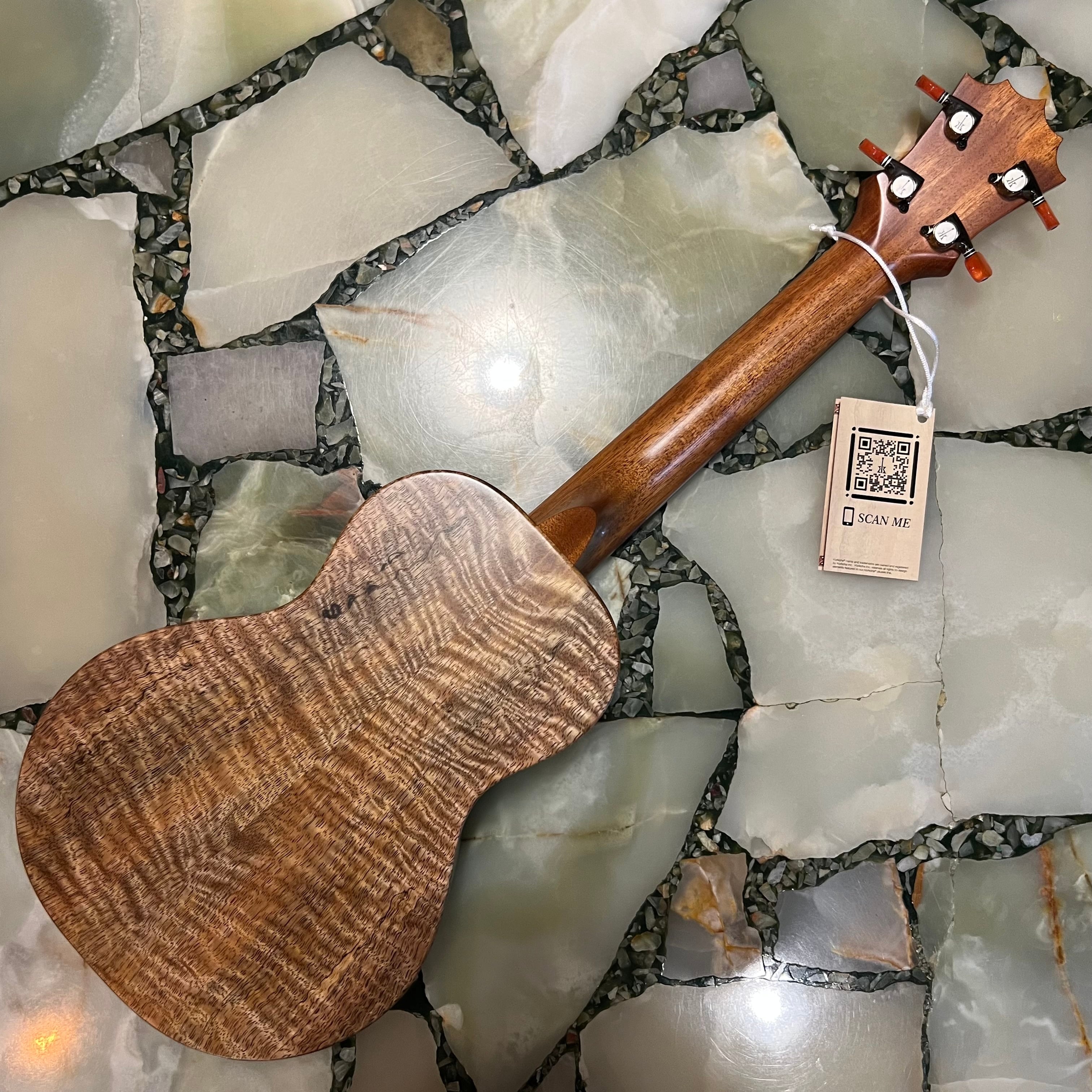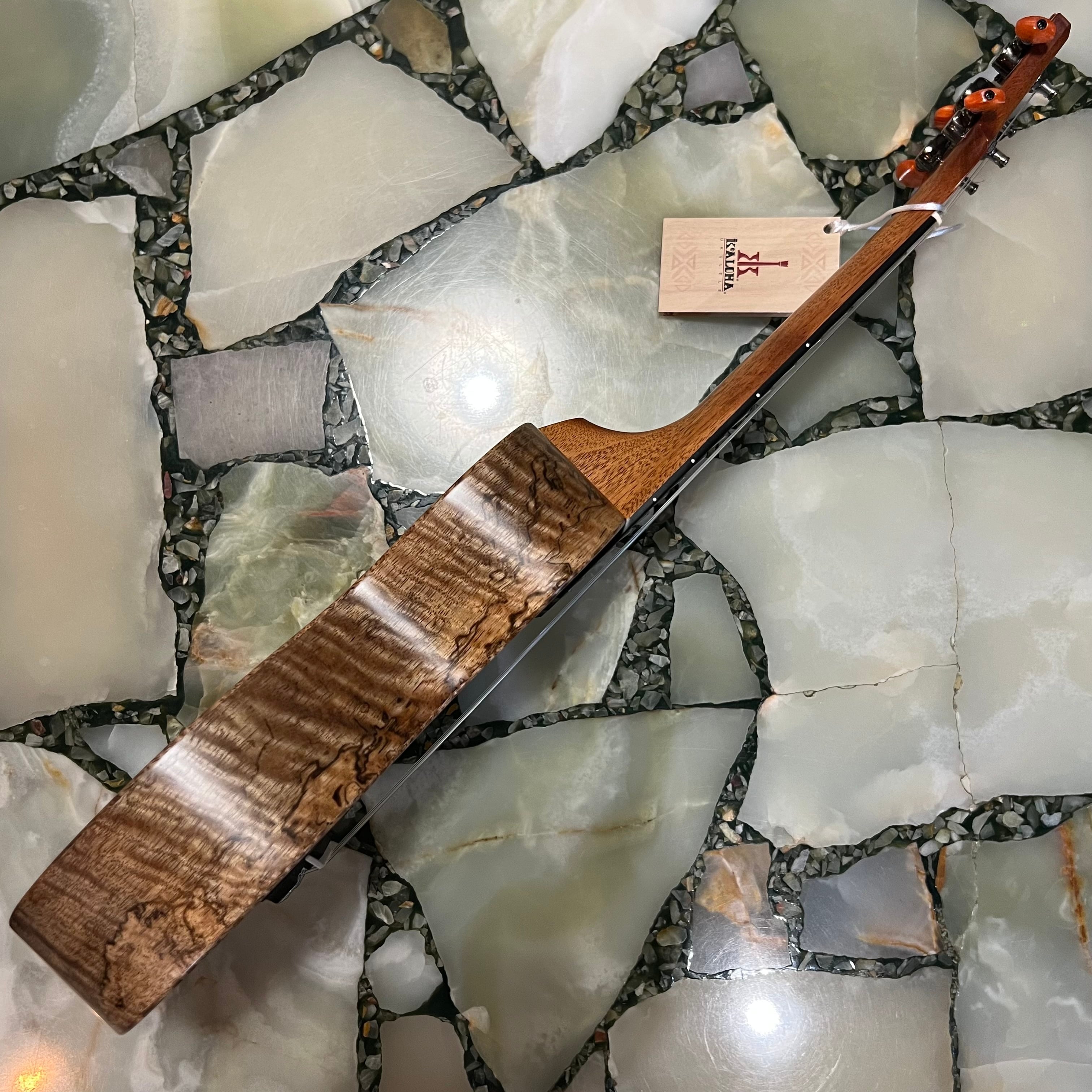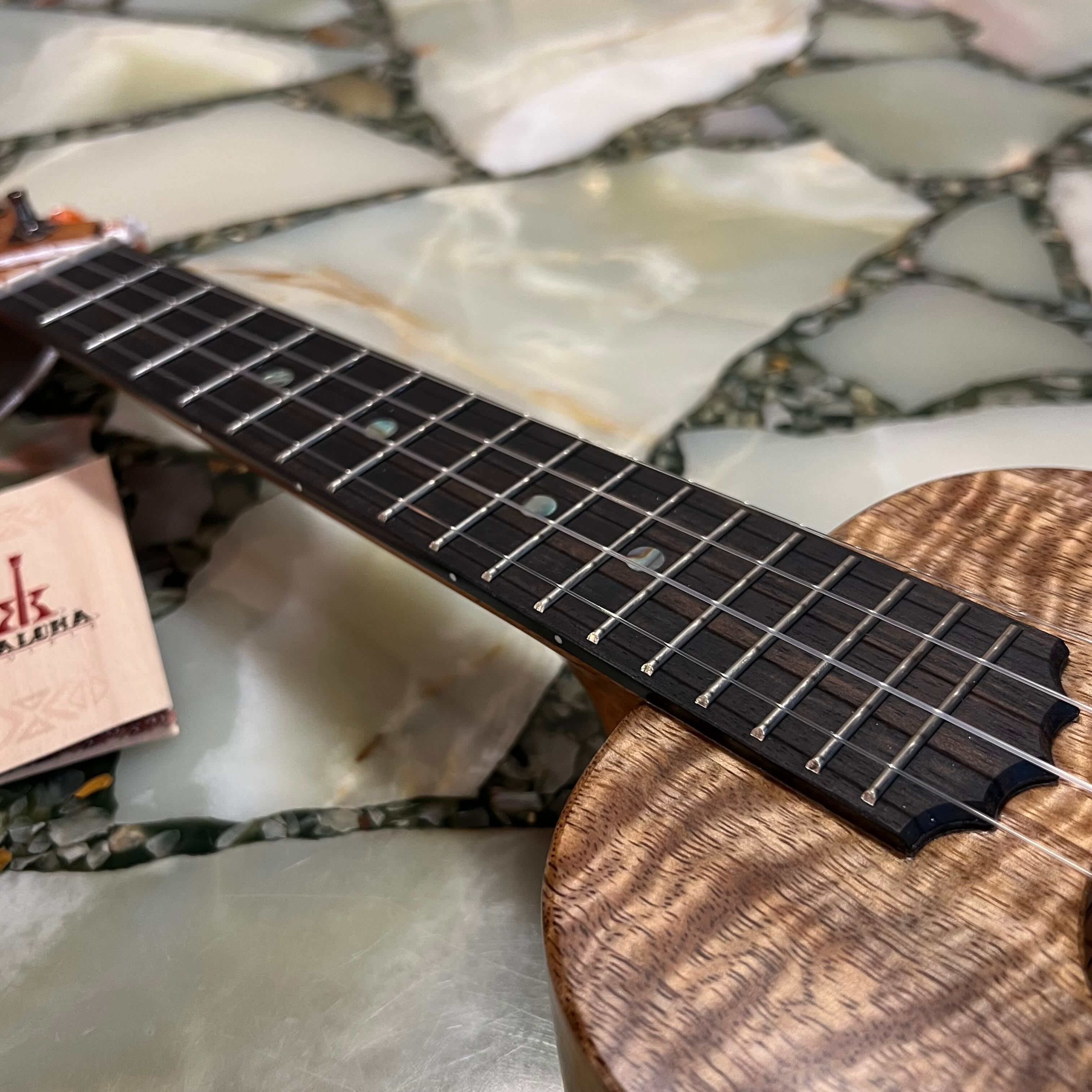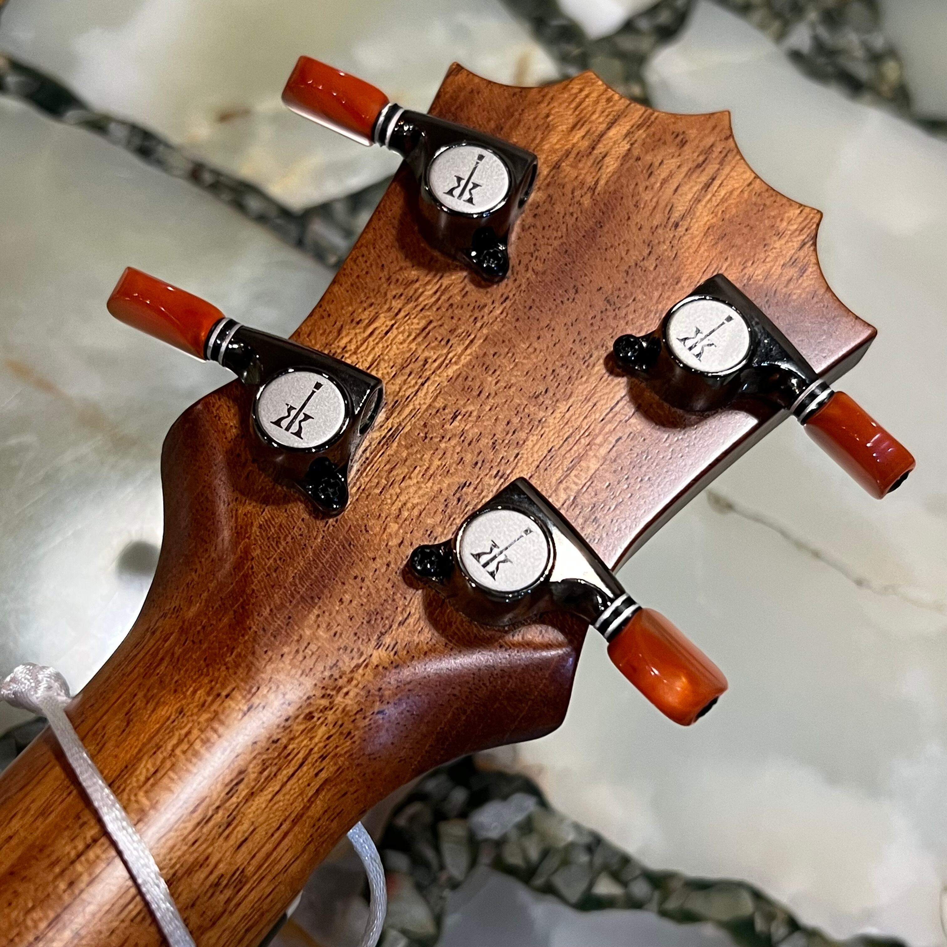 コアロハ独自の、音響面に優れたムスビサウンドホール、音響と強度の両立を図ったユニブレース、フレットサイドの飛び出しを防ぐ指板バインディング、耐久性と音の両立を図った小型クローズドチューナー、演奏しやすい幅広な指板、同じく演奏しやすいようナットと糸巻の距離を離した位置に配置するなど、KoALOHAならではの拘りが詰まった素晴らしい作品となっております。