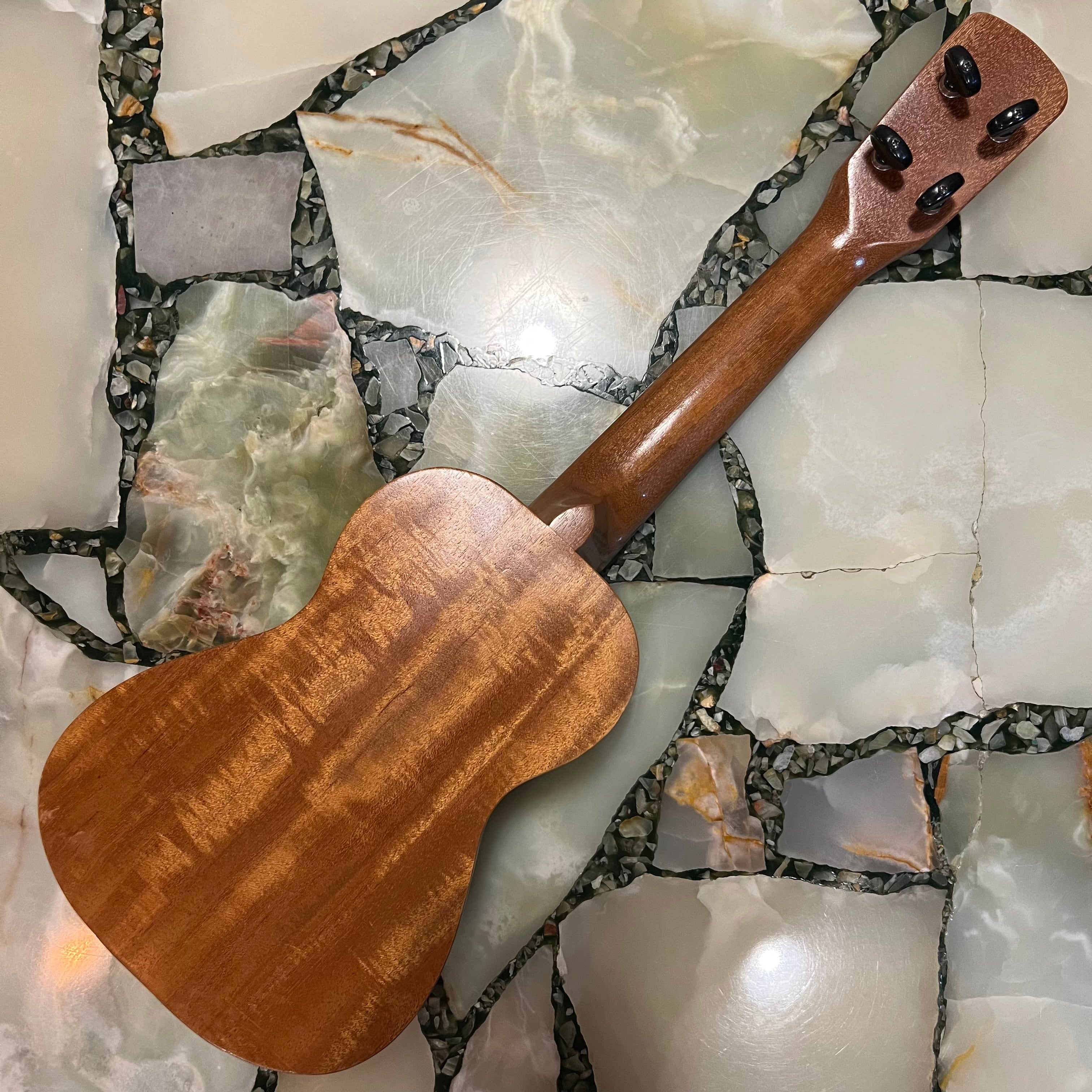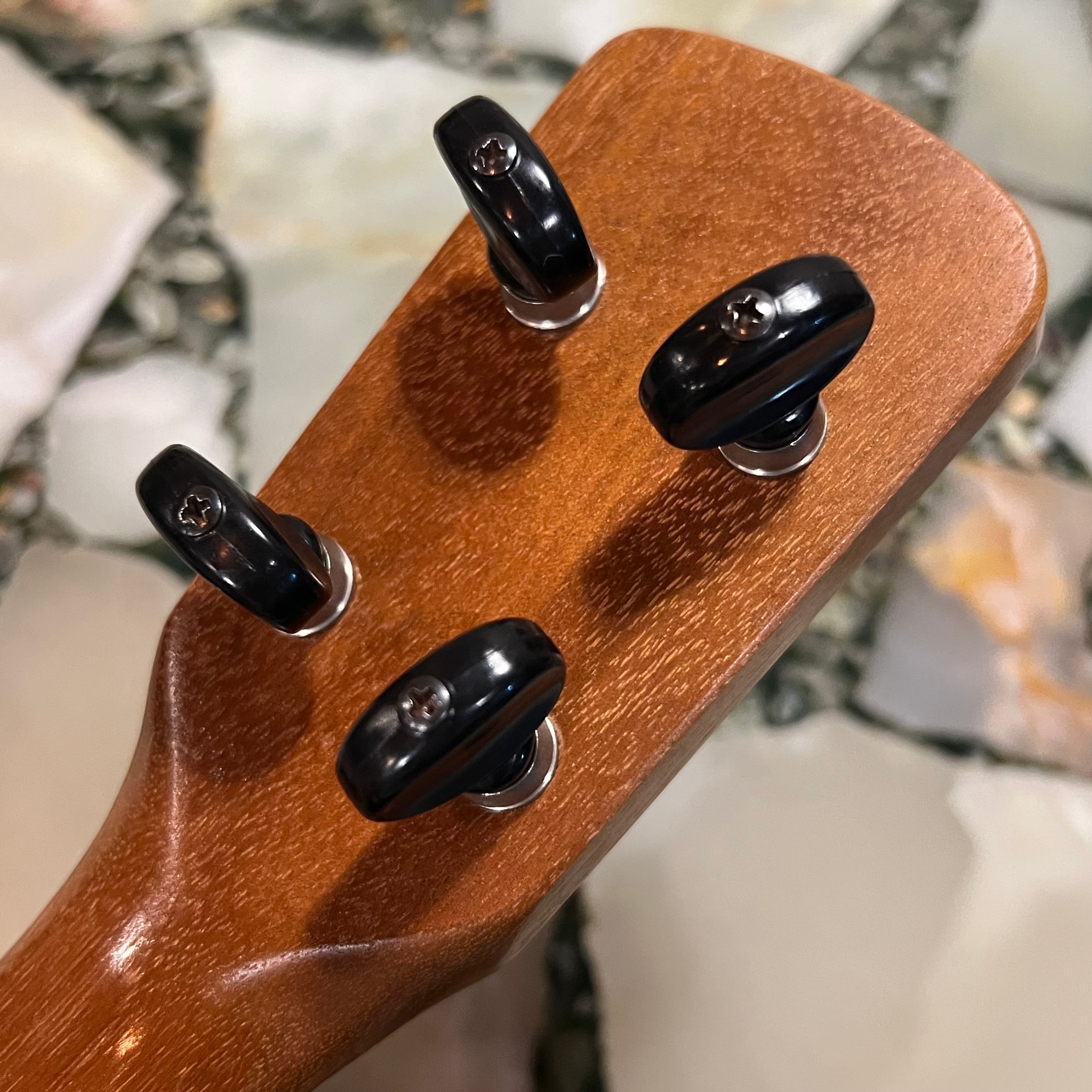 kamakaなど高級ウクレレと同じく、柔らかく響きを遮りにくい、尚且つエイジングも早いラッカー塗装を採用してます。塗装のダメージや木部の傷はあります。また、ヘッドのデカールが一部剥がれてます。