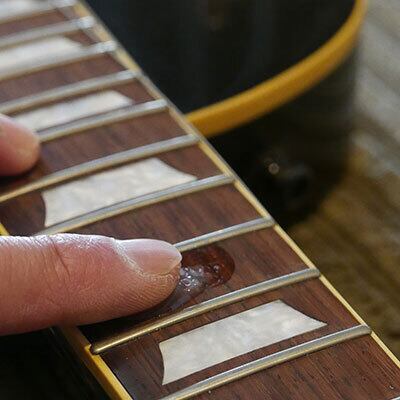 クロスや指で適量取り、指板に塗ってください。サッと拭き取れば完成です。上品な艶と、弦の滑りを感じられます。