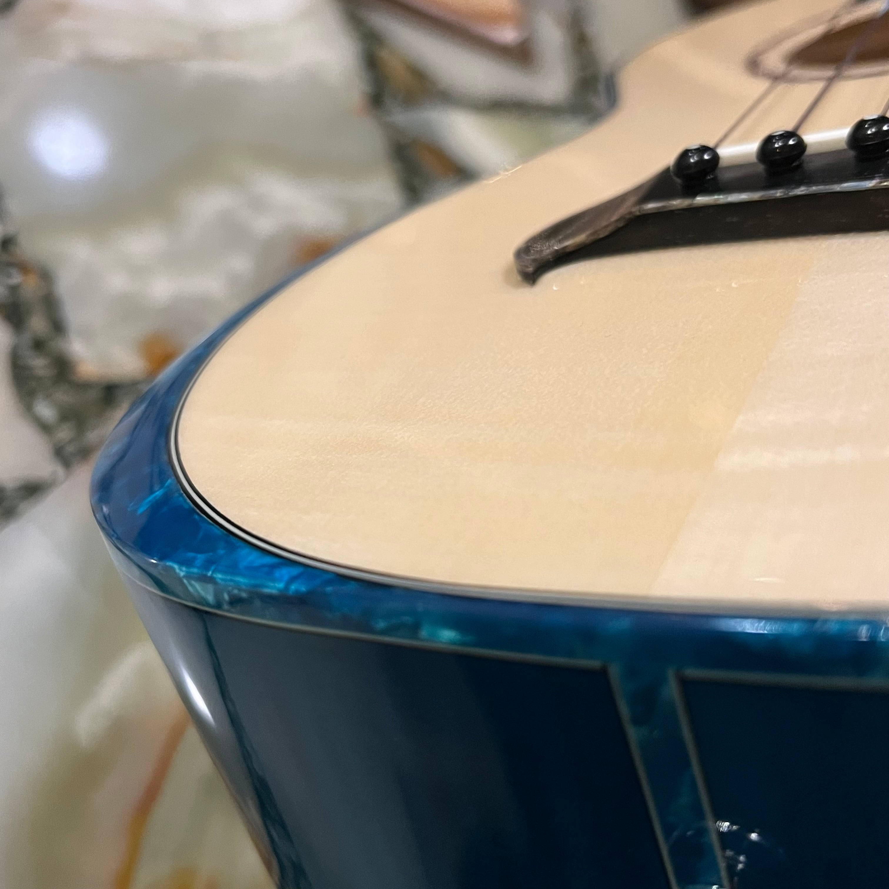 こちらはオーシャンブルーに輝くサイド・バックに豪華な装飾をあしらったテナーサイズのフラッグシップモデル。