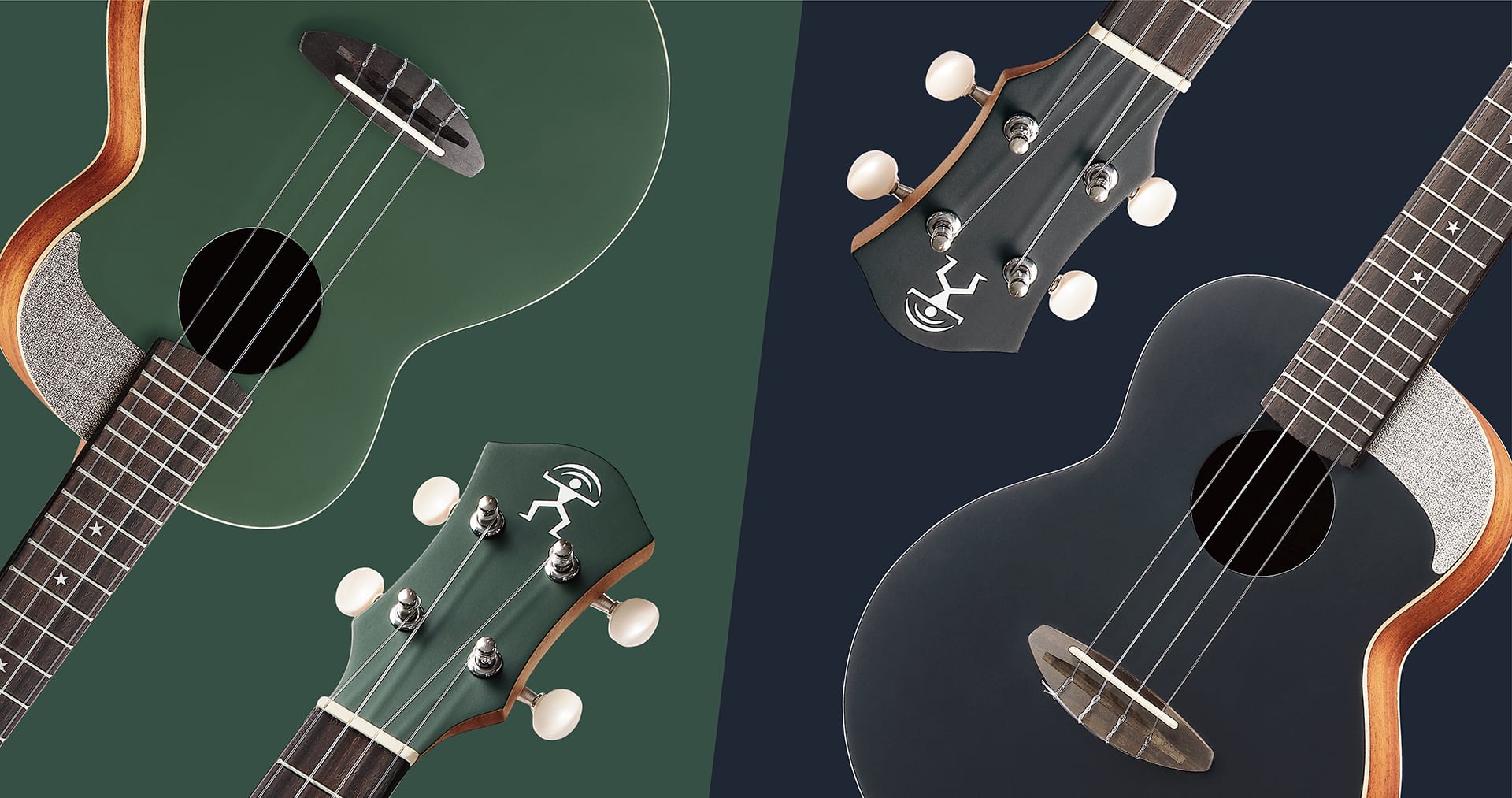 こちらはPOPなカラーリングにピックガードを装着し、ソリッドスプルーストップによる豊かな鳴りが特徴のウクレレです。