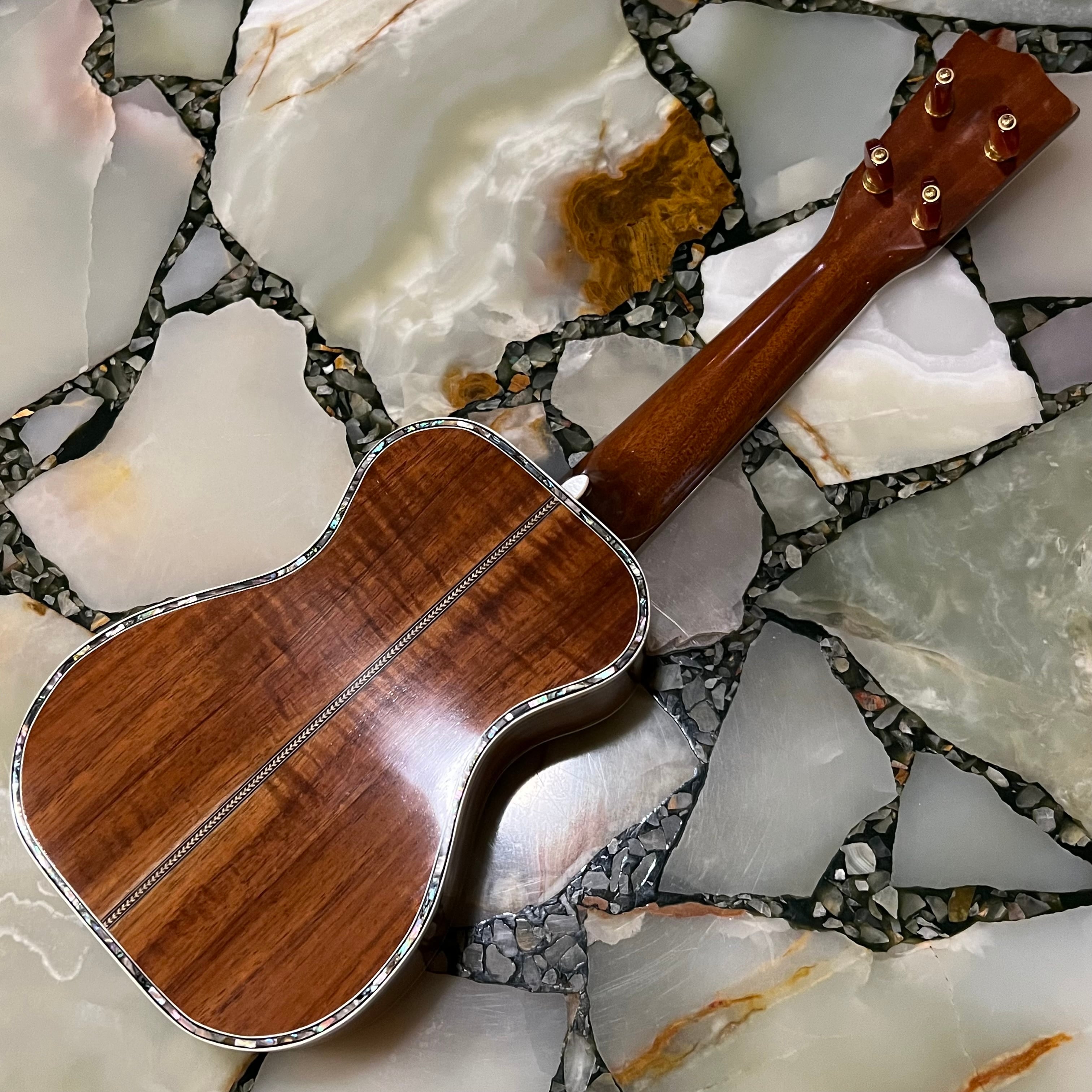 こちらのウクレレは、木材は非常にグレードの高いものを使用しており、また装飾も本物の貝を使用して豪華に仕上げられており、Martinの5Kのようなスペックとなっております。