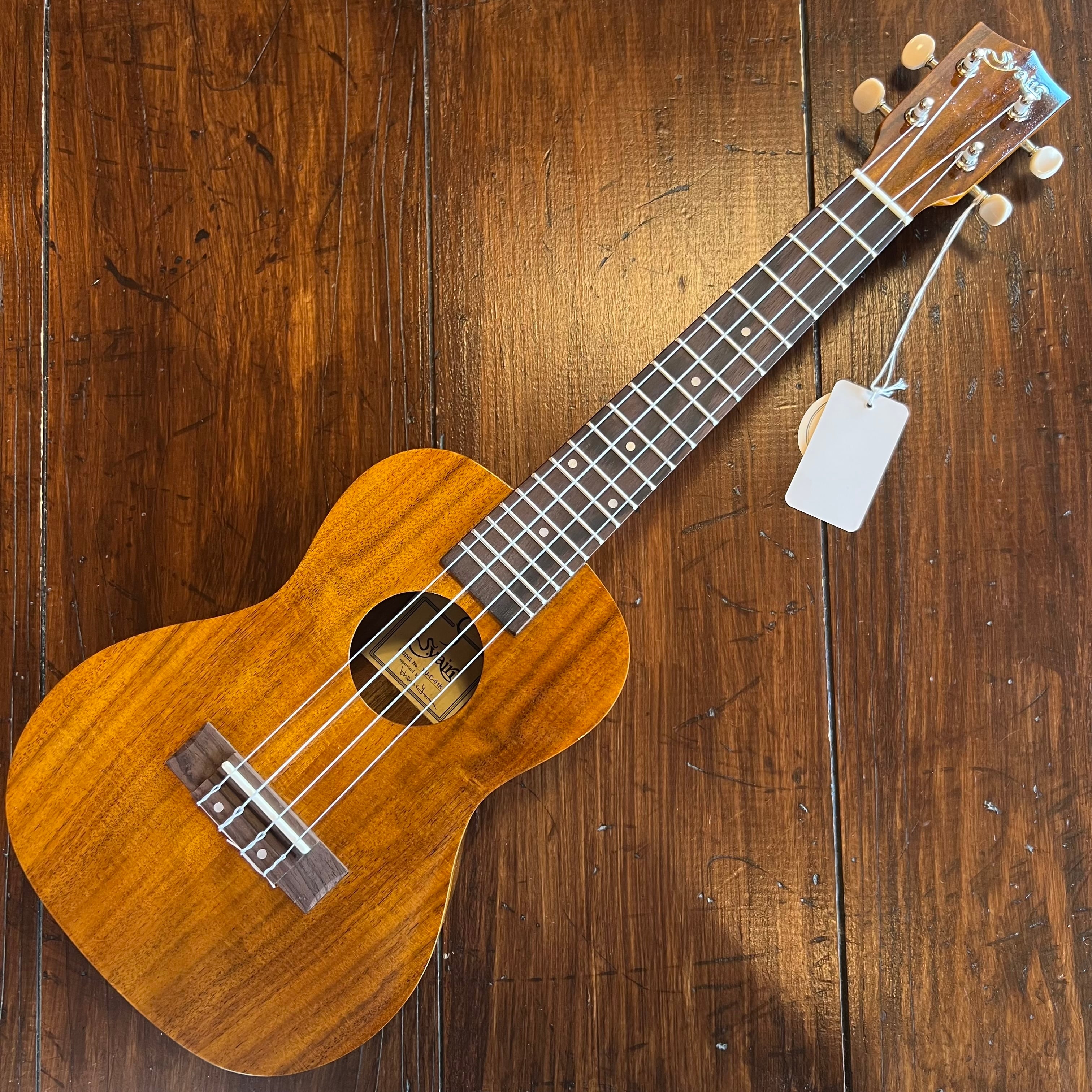 こちらはトップ、サイド&バック全てにコア材を起用し、グロスフィニッシュで高級感を漂わせた、音色・容姿共にトラディショナルの域を超えたコンサートタイプのウクレレです。