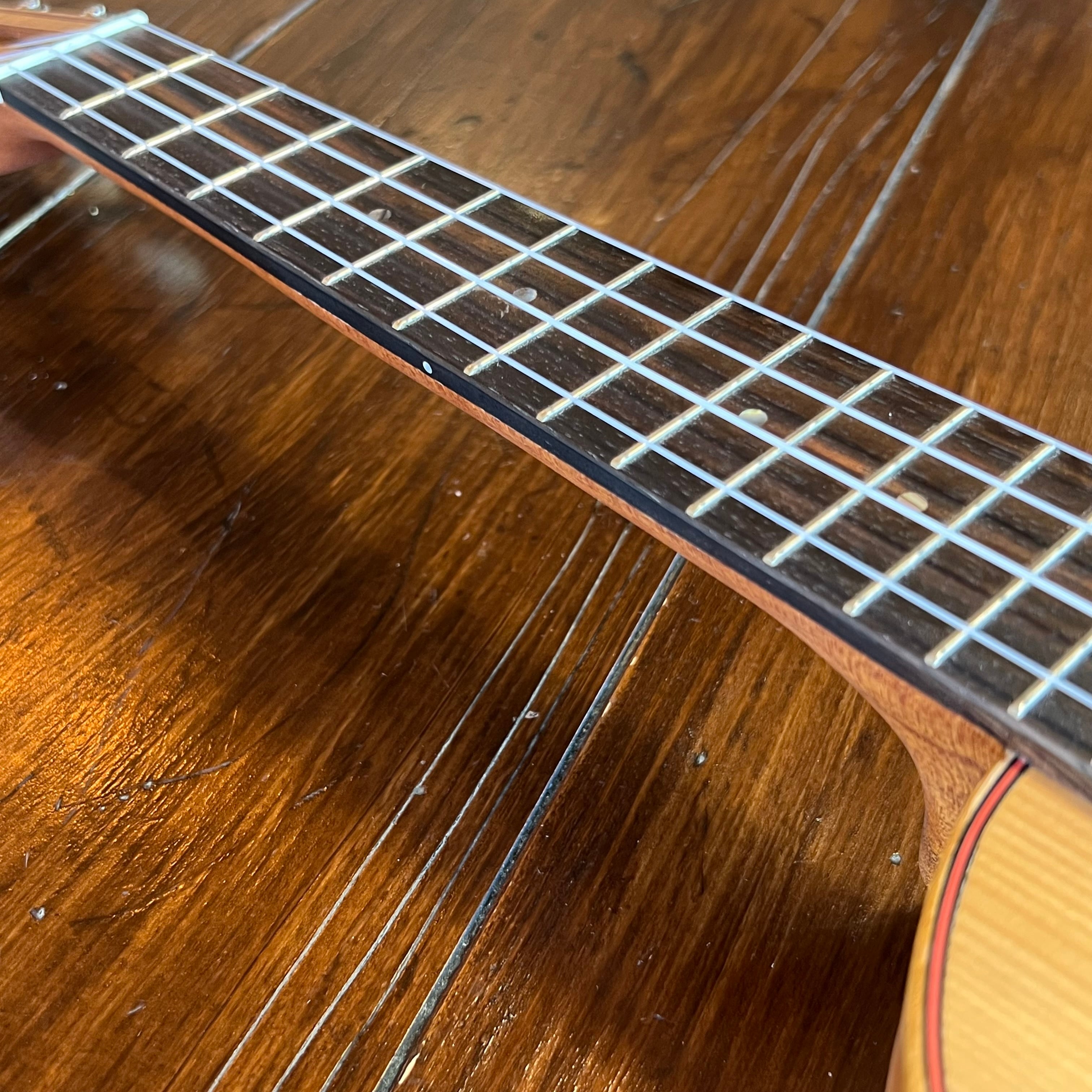 ソリッドレッドシダートップ、ソリッドマホガニーサイドバック、アマラエボニー指板とブリッジを使用し、素早いレスポンスと深みのあるサウンドを実現。