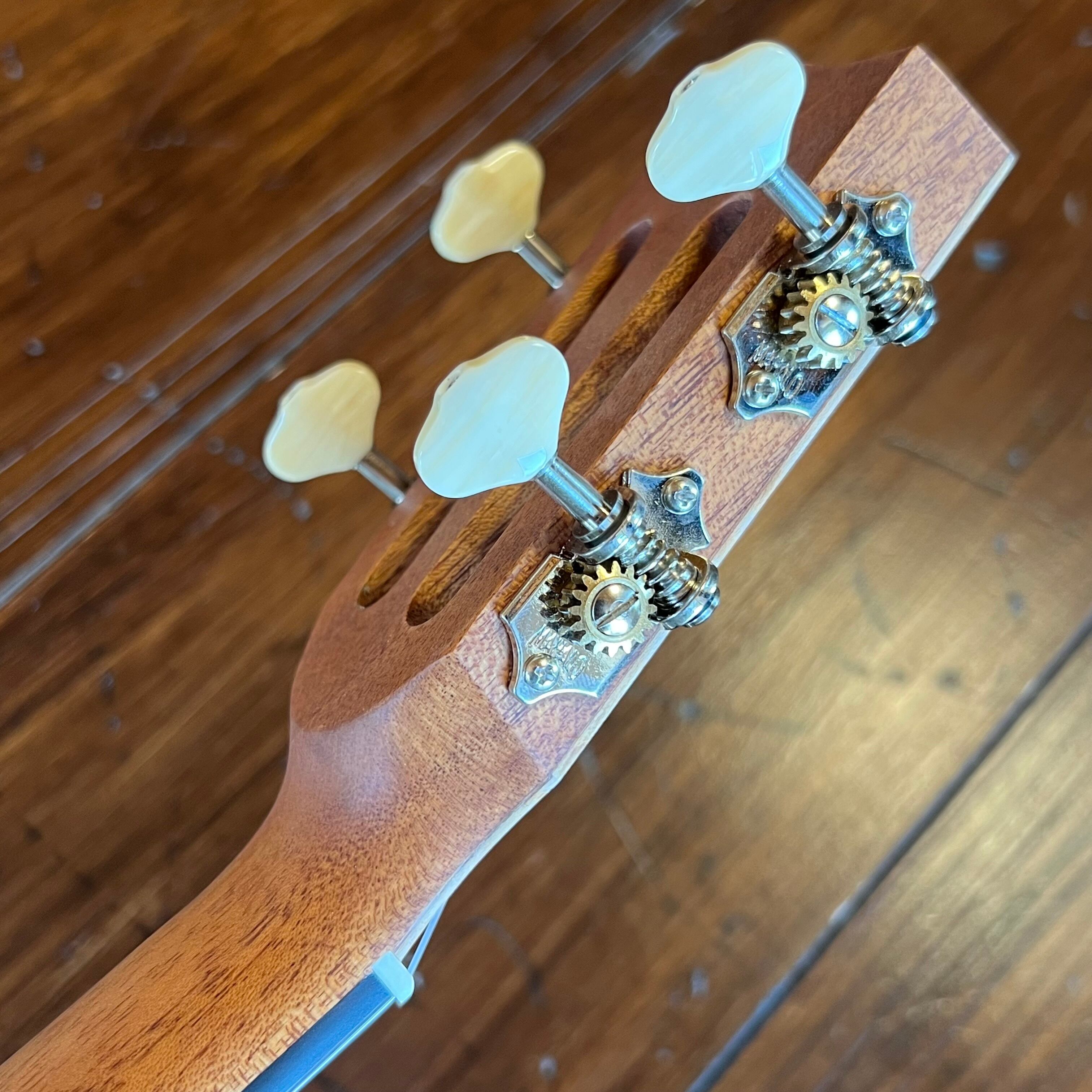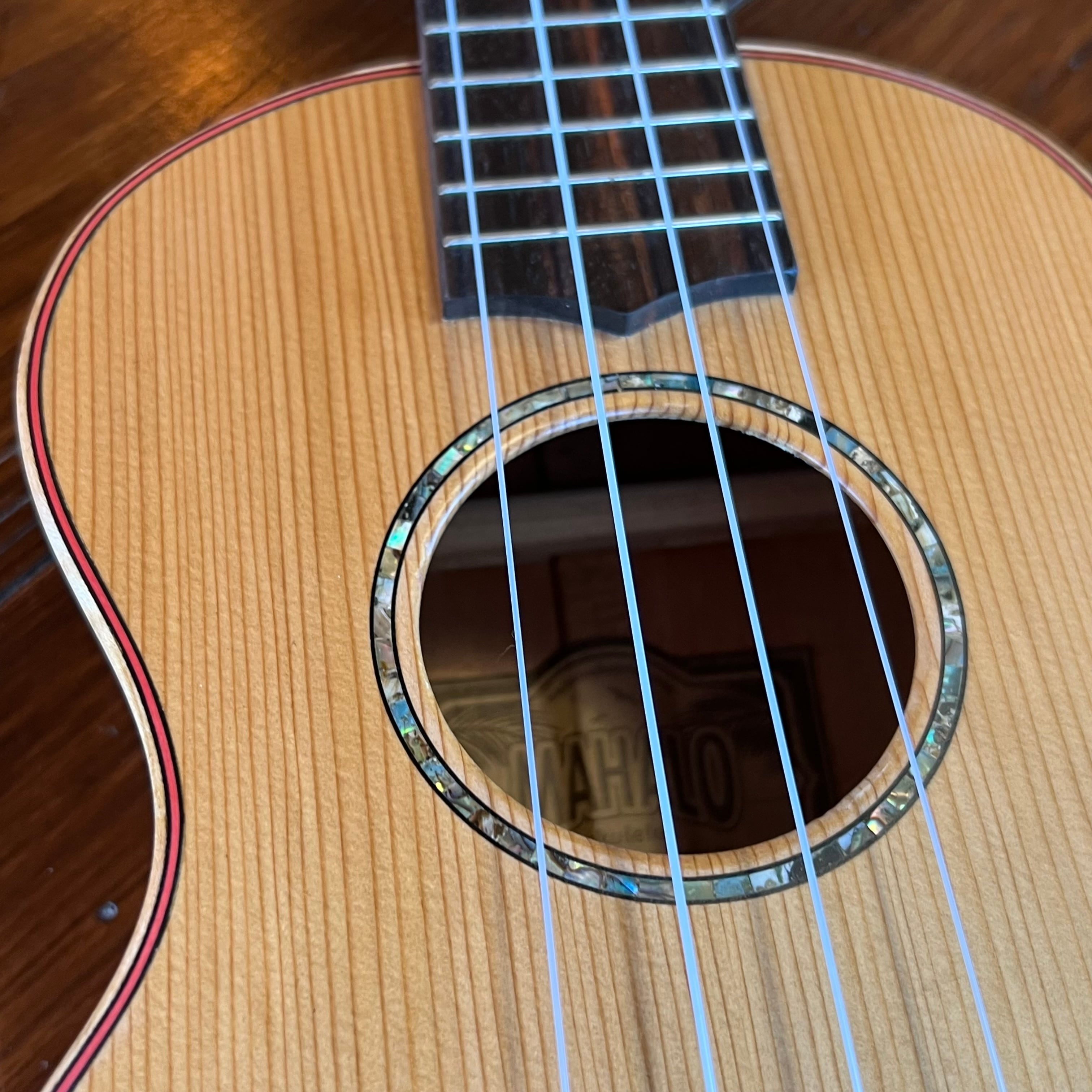 ボーンナットとサドル、ワンピースのマホガニーネック、そして独自開発のToneFlowブレイシング(Kanileaと同じように、ブレイシング材に穴を開けて軽量化し、音と耐久性の両立が図られております)を使用することで、驚くほどの音量と豊かな響き生み出します。
