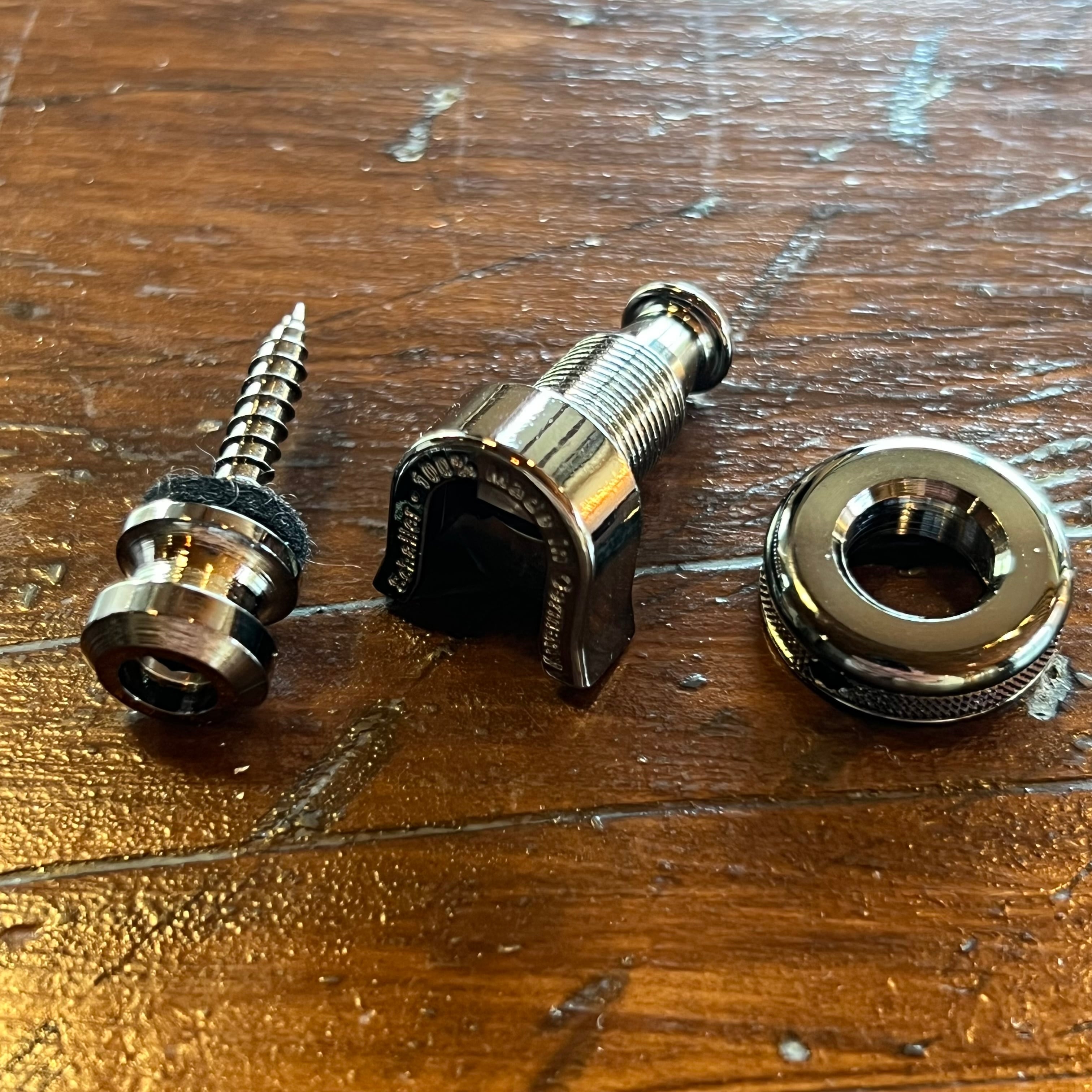 ・ 新しく、ユニークな1ピースストラップボタン。硬化スチール製のセルフタッピングねじです。3mm径のレンチを使ってギターに取り付けます。