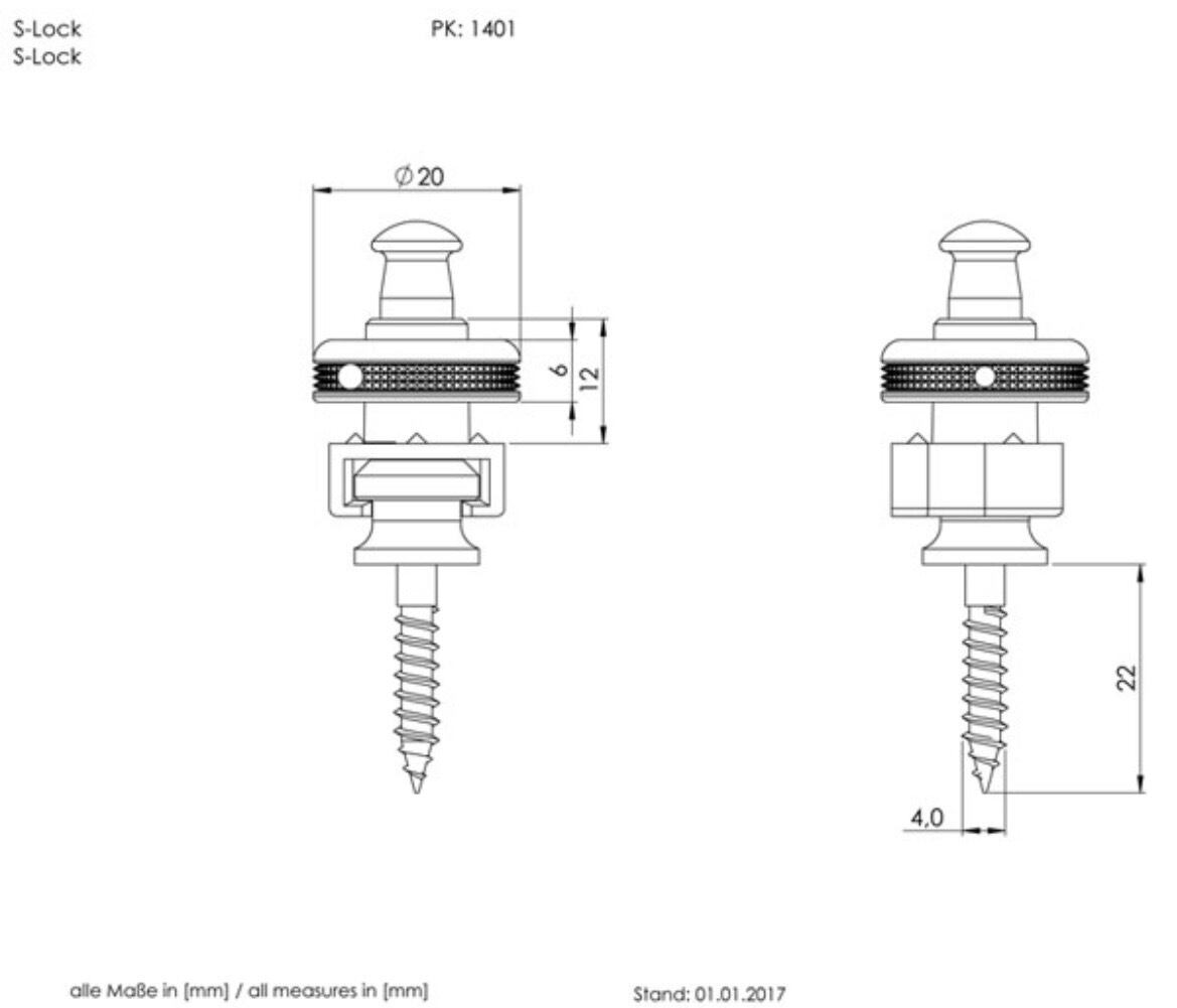 最新のストラップロックS-LocksのSは, 安全(save)、静かさ(silent)、そしてシャーラー(Schaller)社の製品である事を意味します。新しく、画期的なS-Locksからは余計な音が聞こえません。ワンピースの硬スチール製のストラップボタン、美しいデザイン、完璧な操作性、洗練されたロックホイール。これらのすべてがひとつに組み込まれてS-Locksは構成されています。