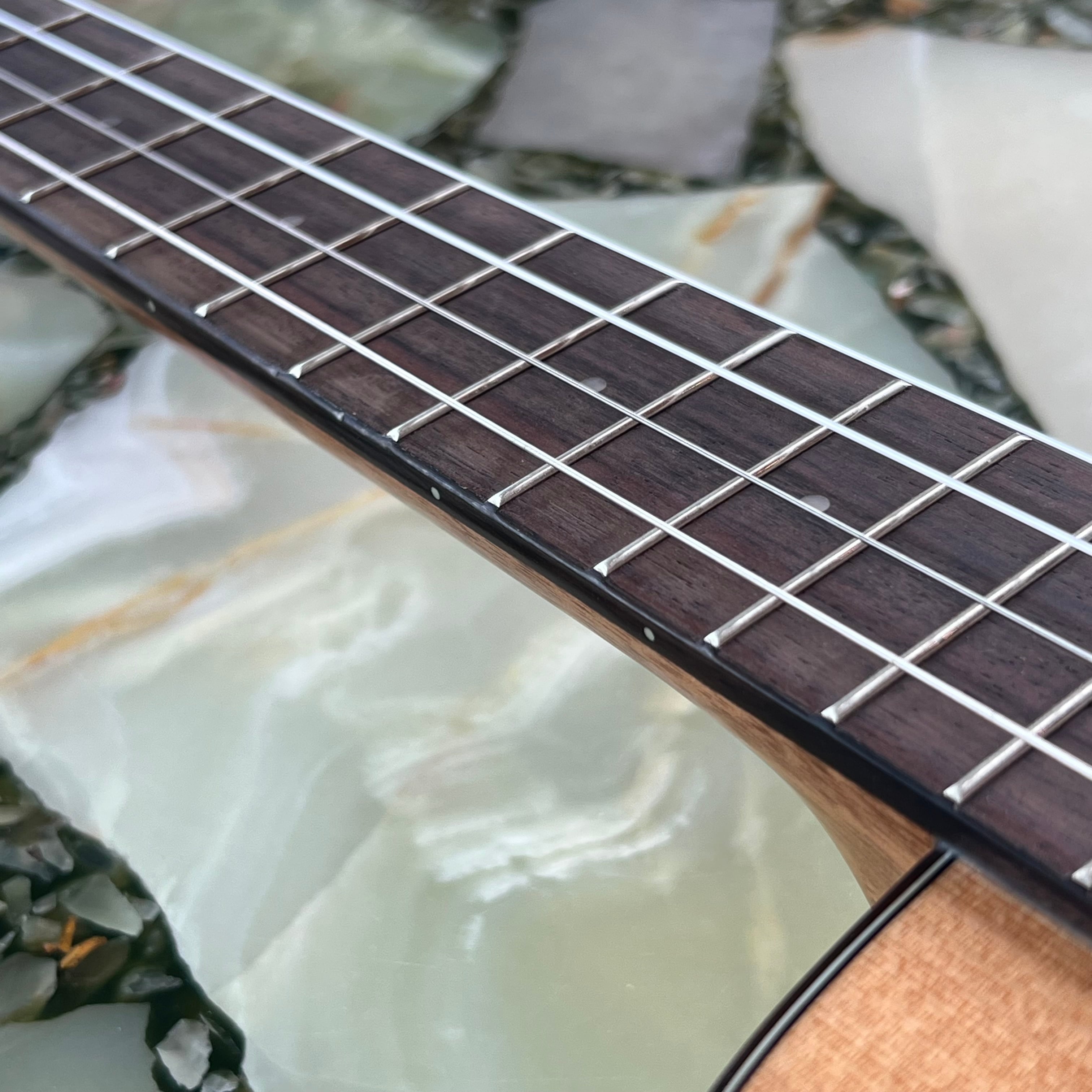 ソリッドシダートップ、アカシアのバック&サイドのボディをハイグロスフィニッシュで仕上げた洗練された組み合わせに、さらにローズウッドバインディング、アバロンロゼット、ローズウッド指板とブリッジ、Graphtech Ratioブラックチューナーを追加しました。シダー材は柔らかく豊かな音色で、フィンガースタイルの演奏に適しています。音量が大きめなのでステージで演奏するのに最適なウクレレとして推奨されています。