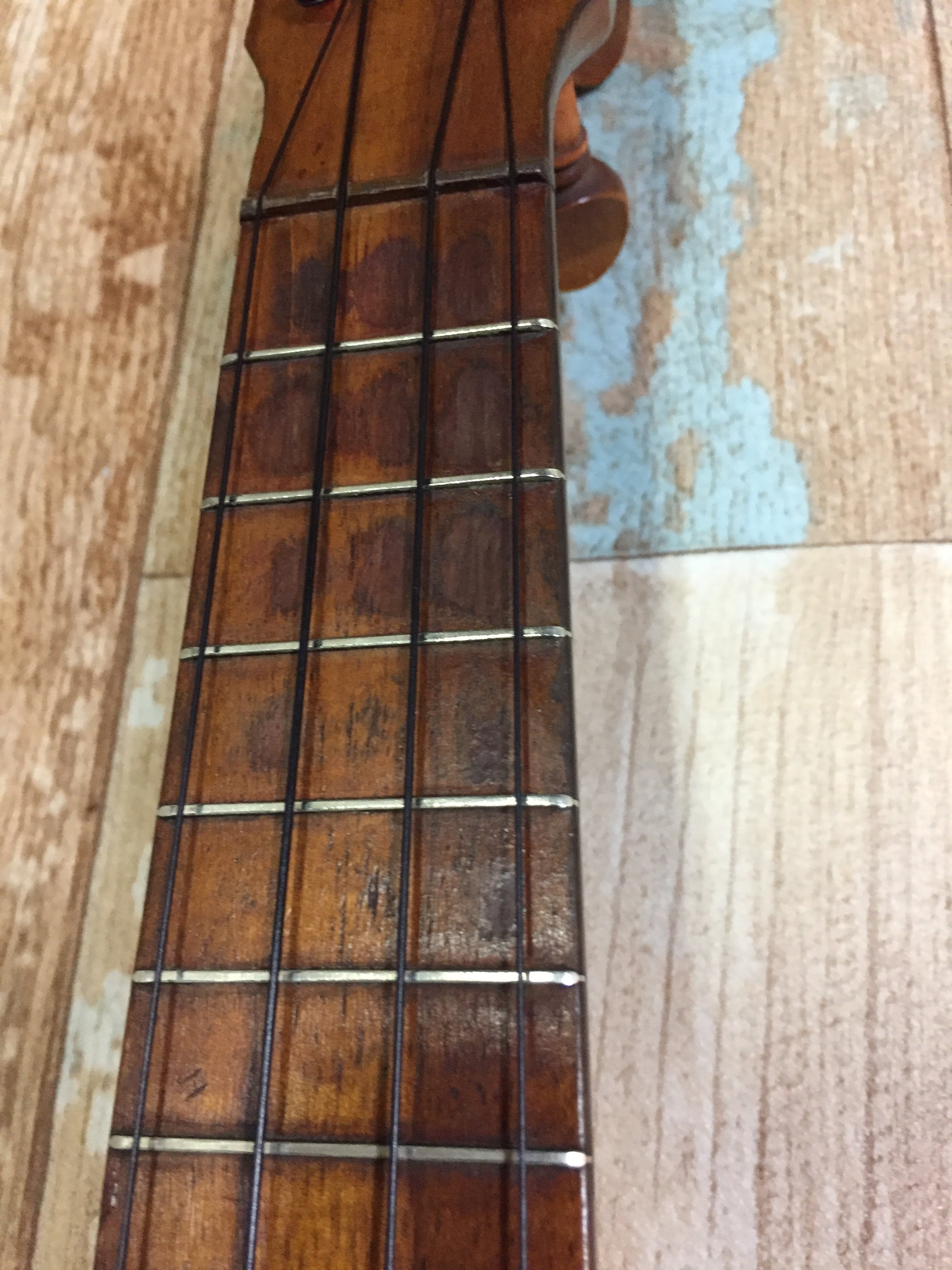 TOPやBACK、指板やネック裏に塗装の剥がれ、変色が見られます。