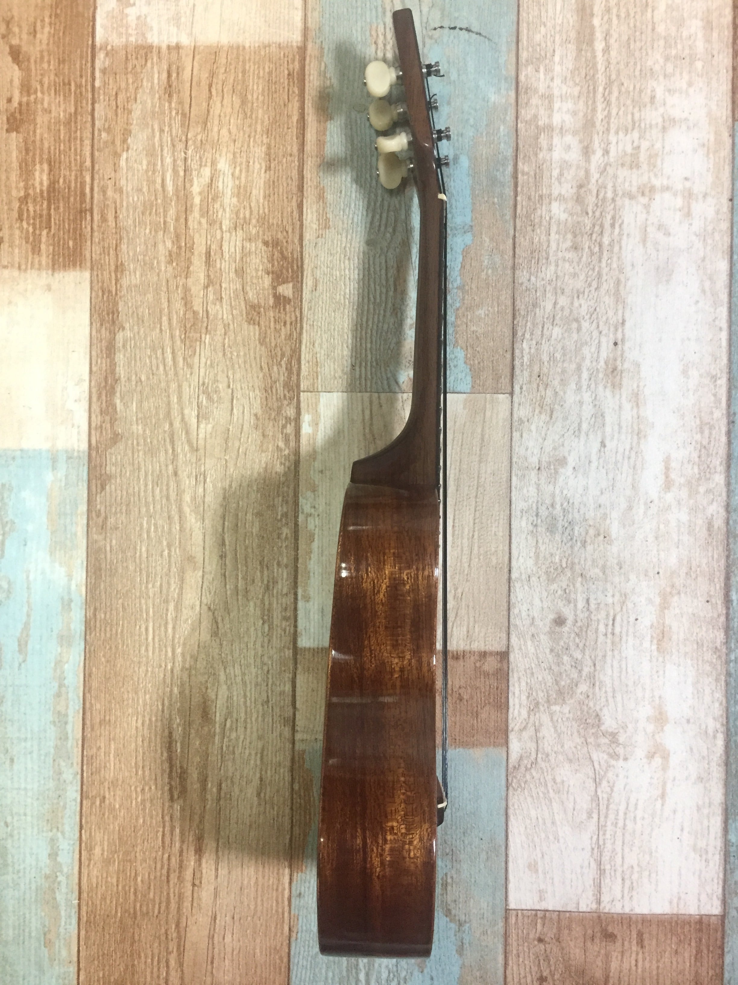 ナット、サドルも再調整を施し、弦高は12フレットで約2.5mmと弾きやすく、ハワイアンブランドでよくあるハイポジションの音程のズレもほぼ気にならない優秀なレベルです。