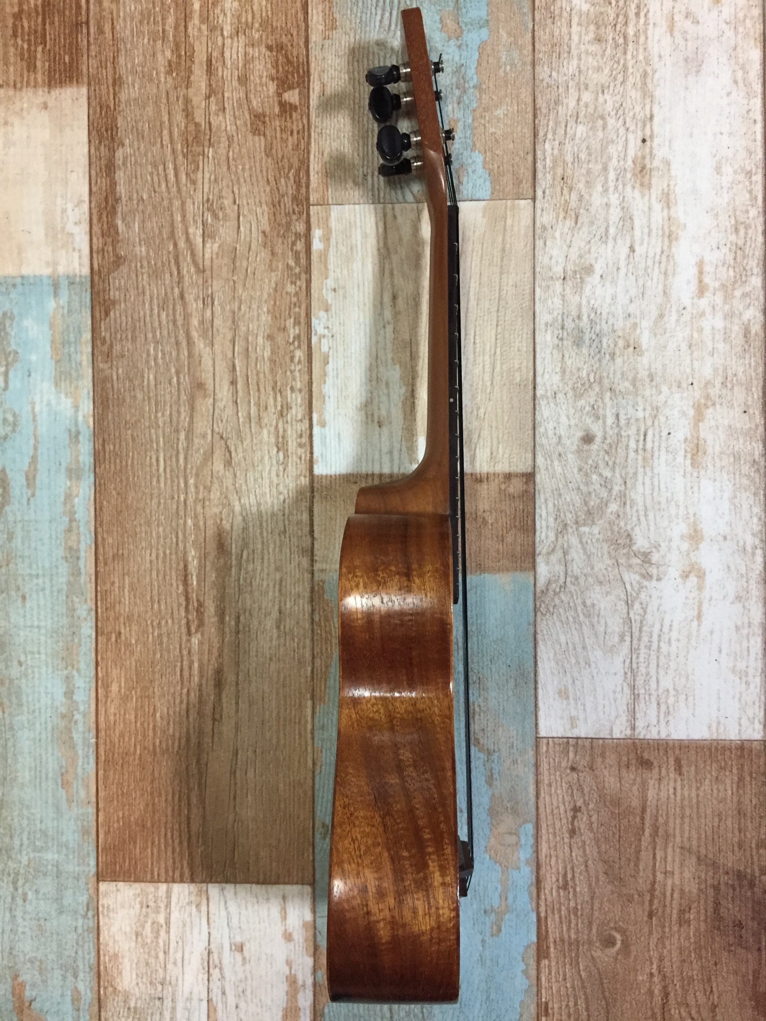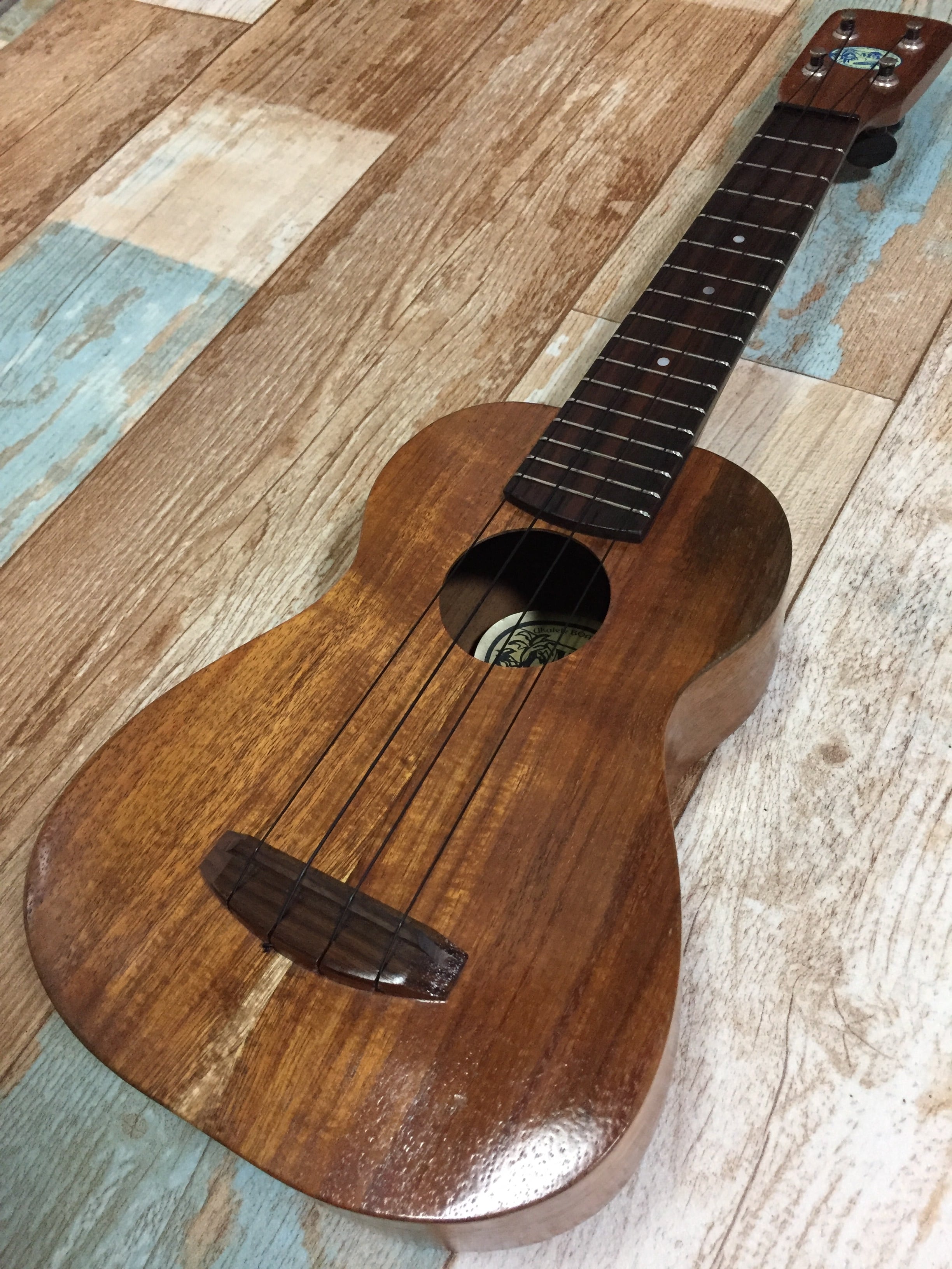 こちらのウクレレの音についてですが、ハワイアンコア特有のアタック音の気持ち良いコロッとしたサウンドが特徴です。ラッカー塗装で、尚且つ10年以上経過しておりますので、音に深みも出てきております。