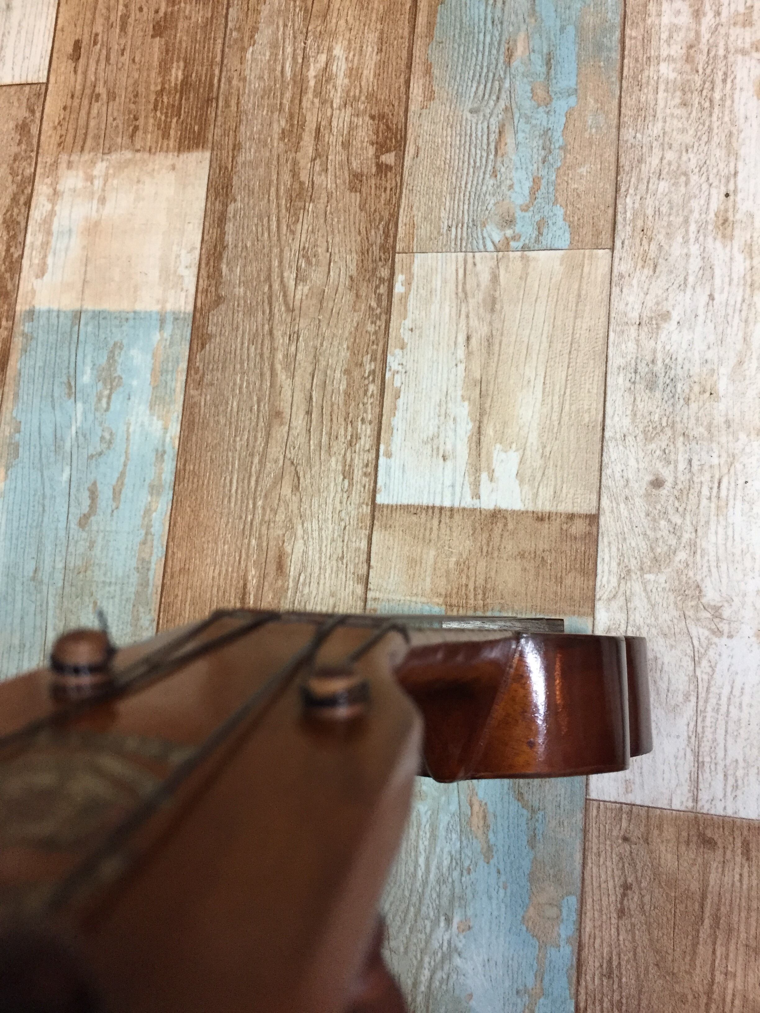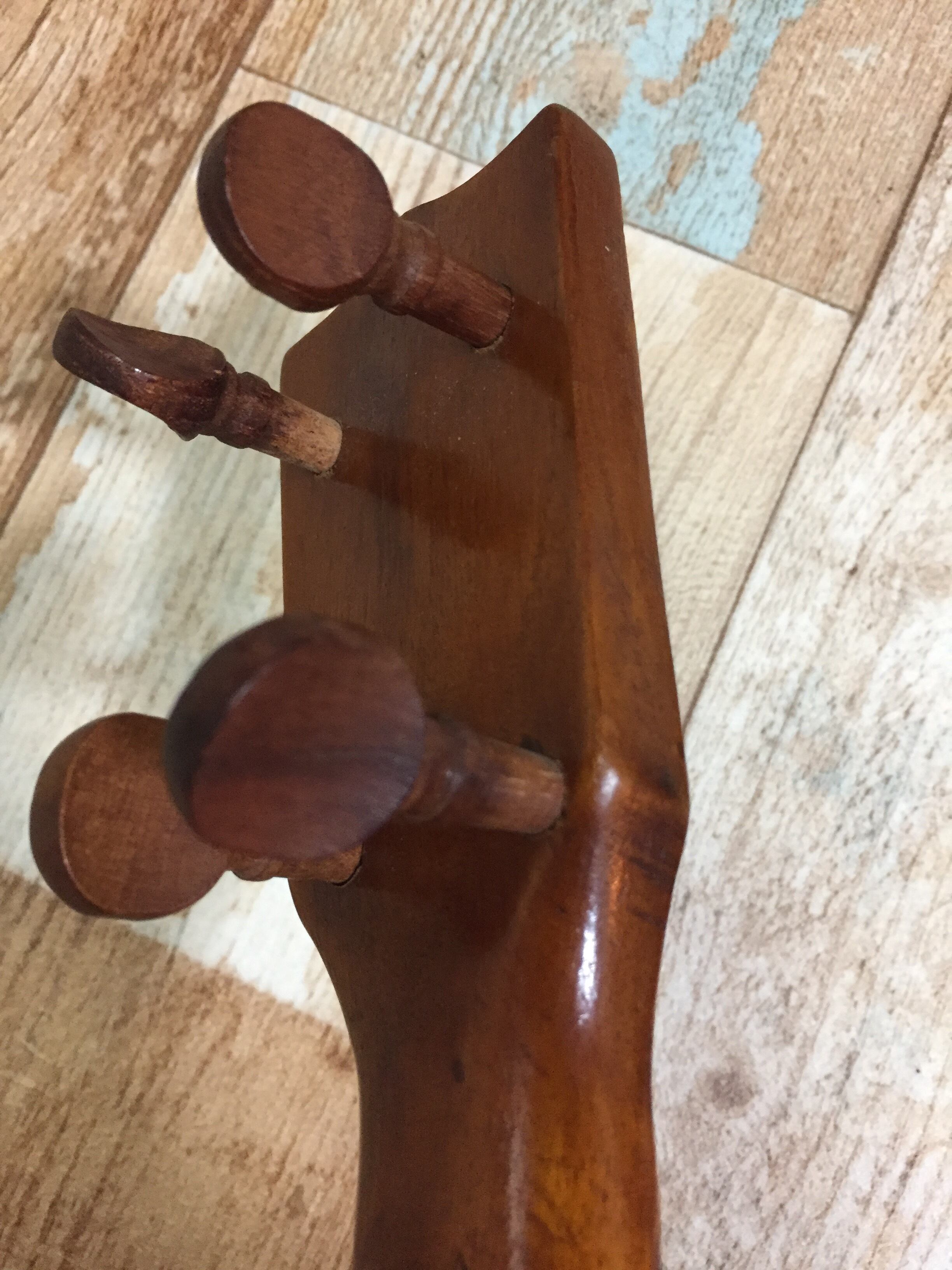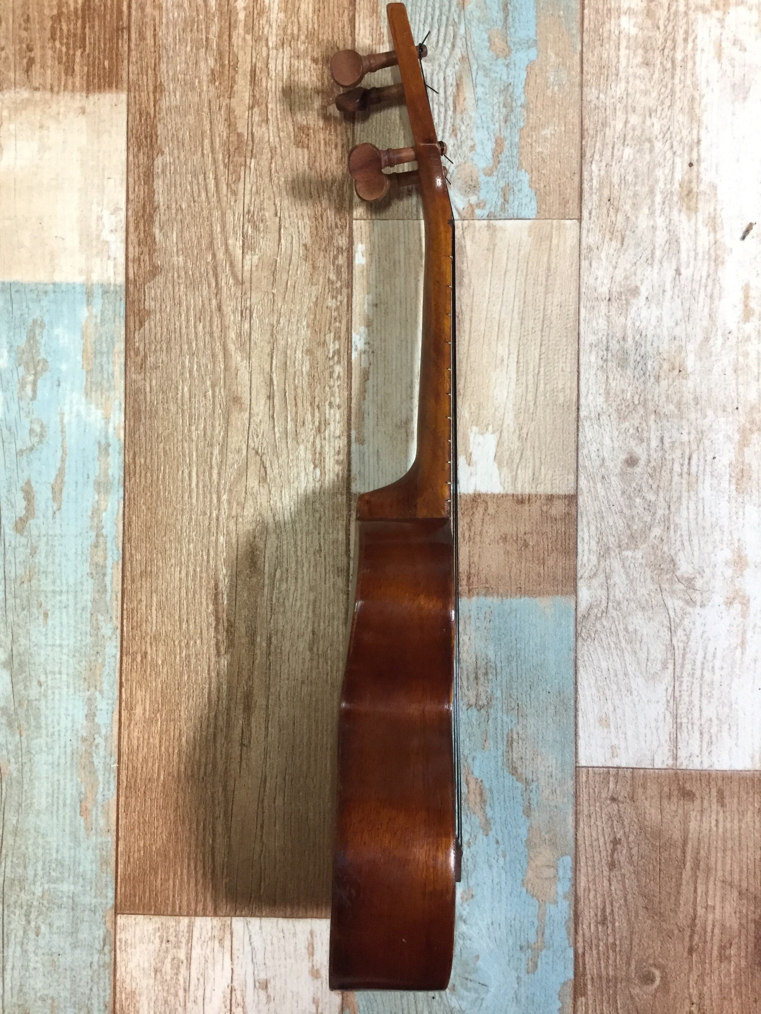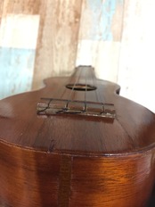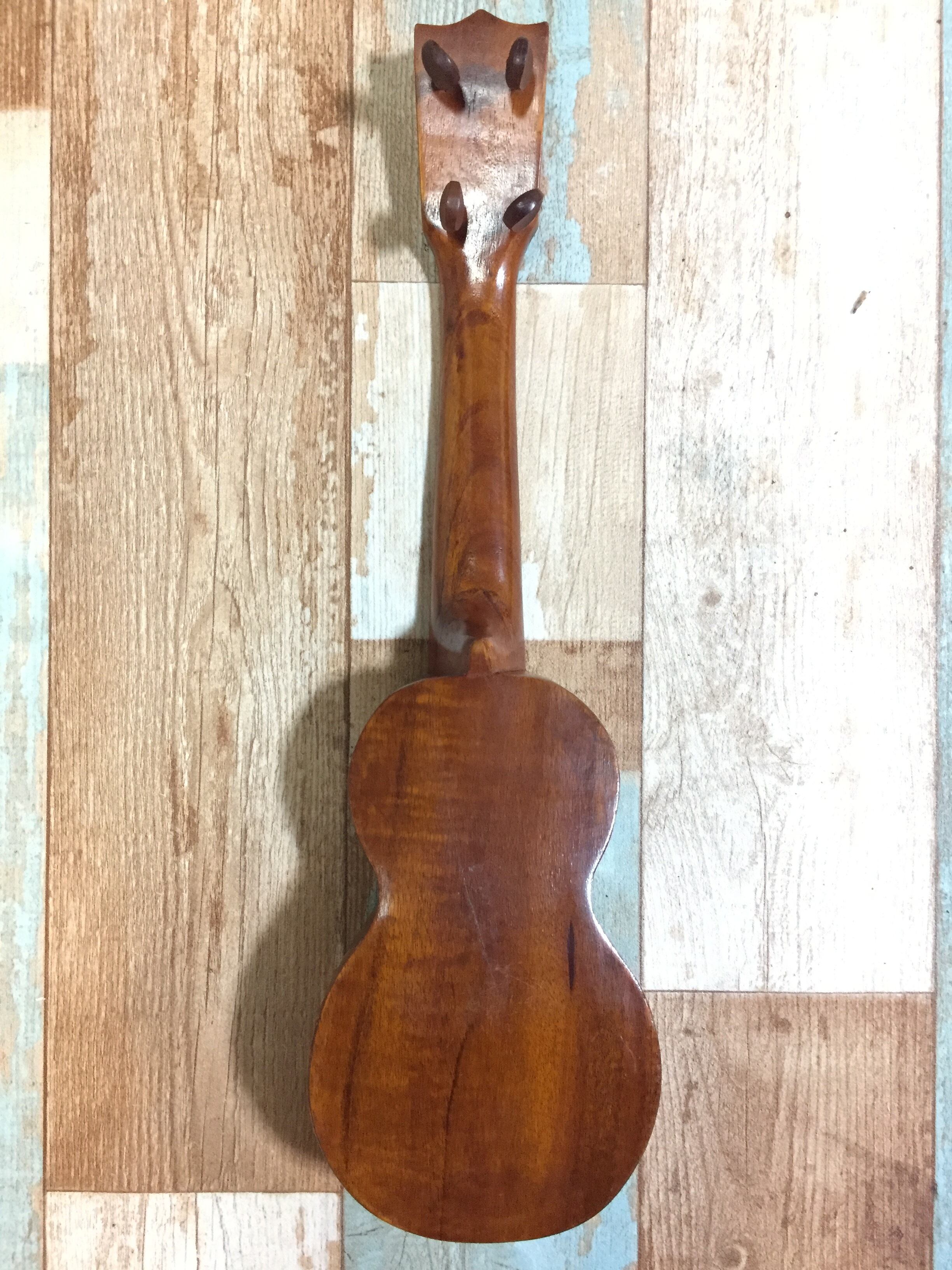 TopとBackに10cm位のクラックがありましたが、パッチ補修して、GHS弦を張った所、爆鳴りです。サスティーンはあまりありませんが、これぞヴィンテージウクレレサウンドという素晴らしい音です。