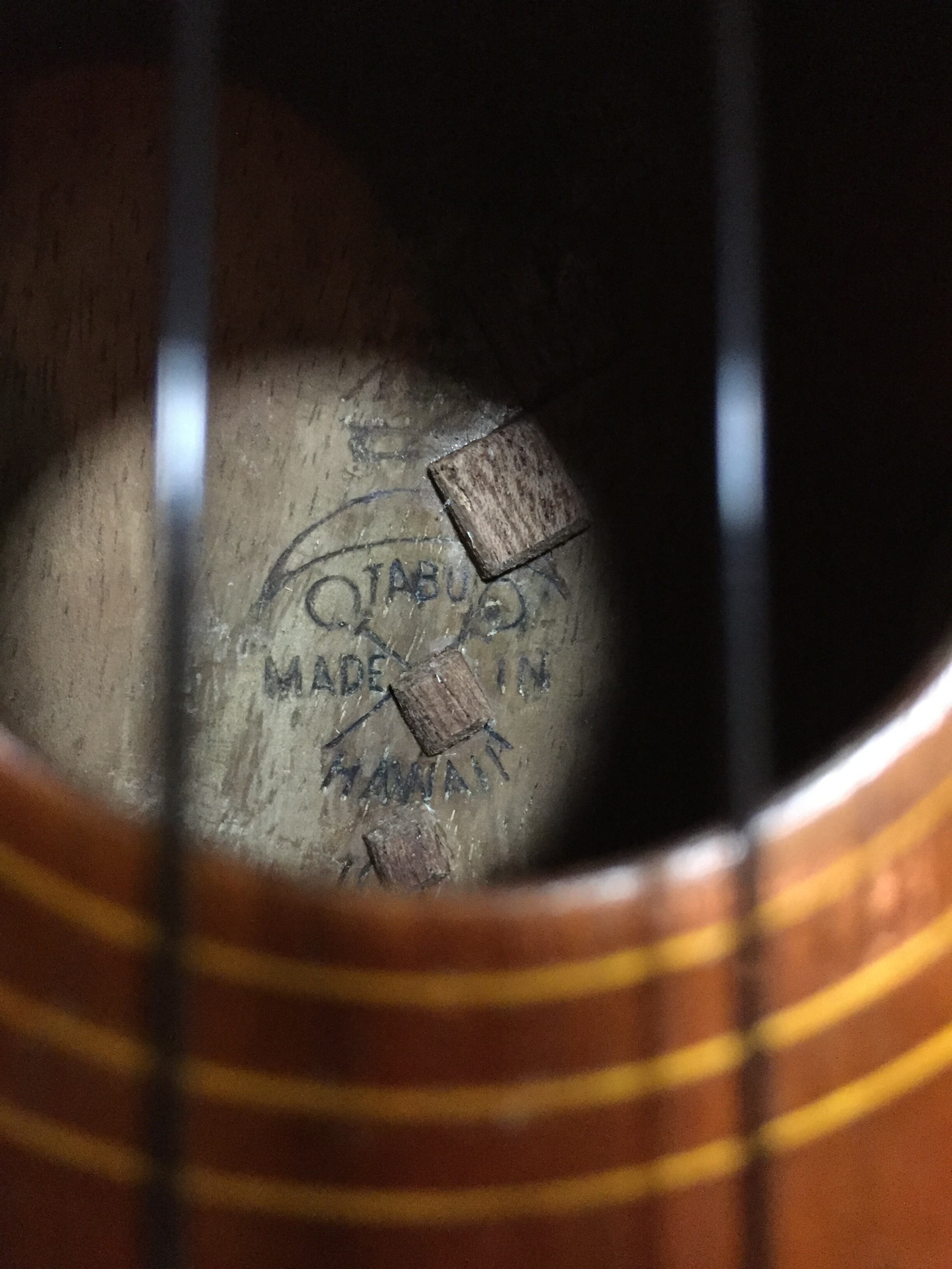 1915~25年頃、アメリカ本土でウクレレが流行り出し、ハワイ製と謳ったアメリカ本土製造のウクレレが出回り、本家ハワイ製のウクレレを表す為に、ハワイのウクレレメーカーが王冠と2本のオールのマークと共にTABU (タブー)MADE IN HAWAIIと刻印をして販売するようになりました。