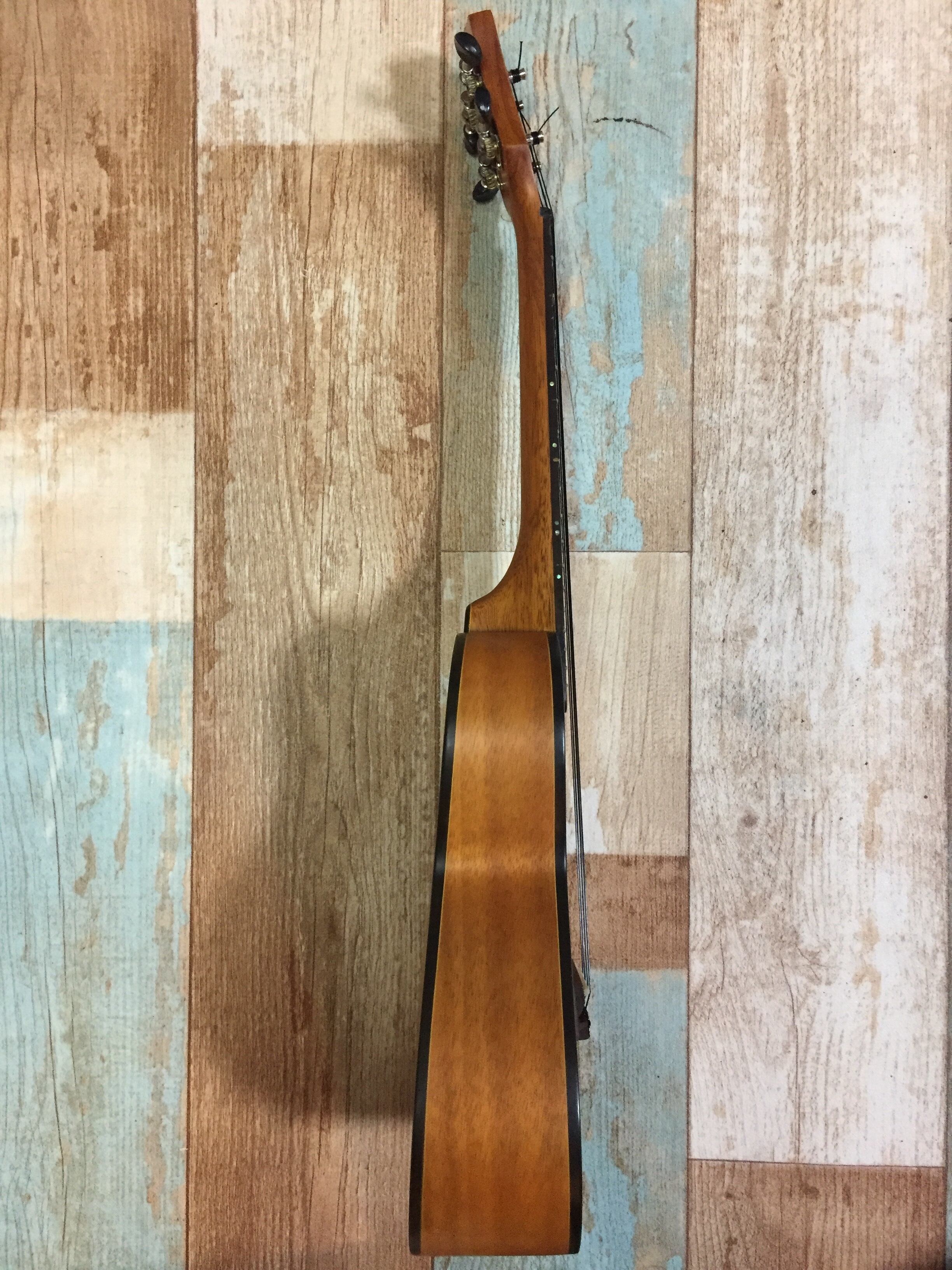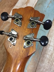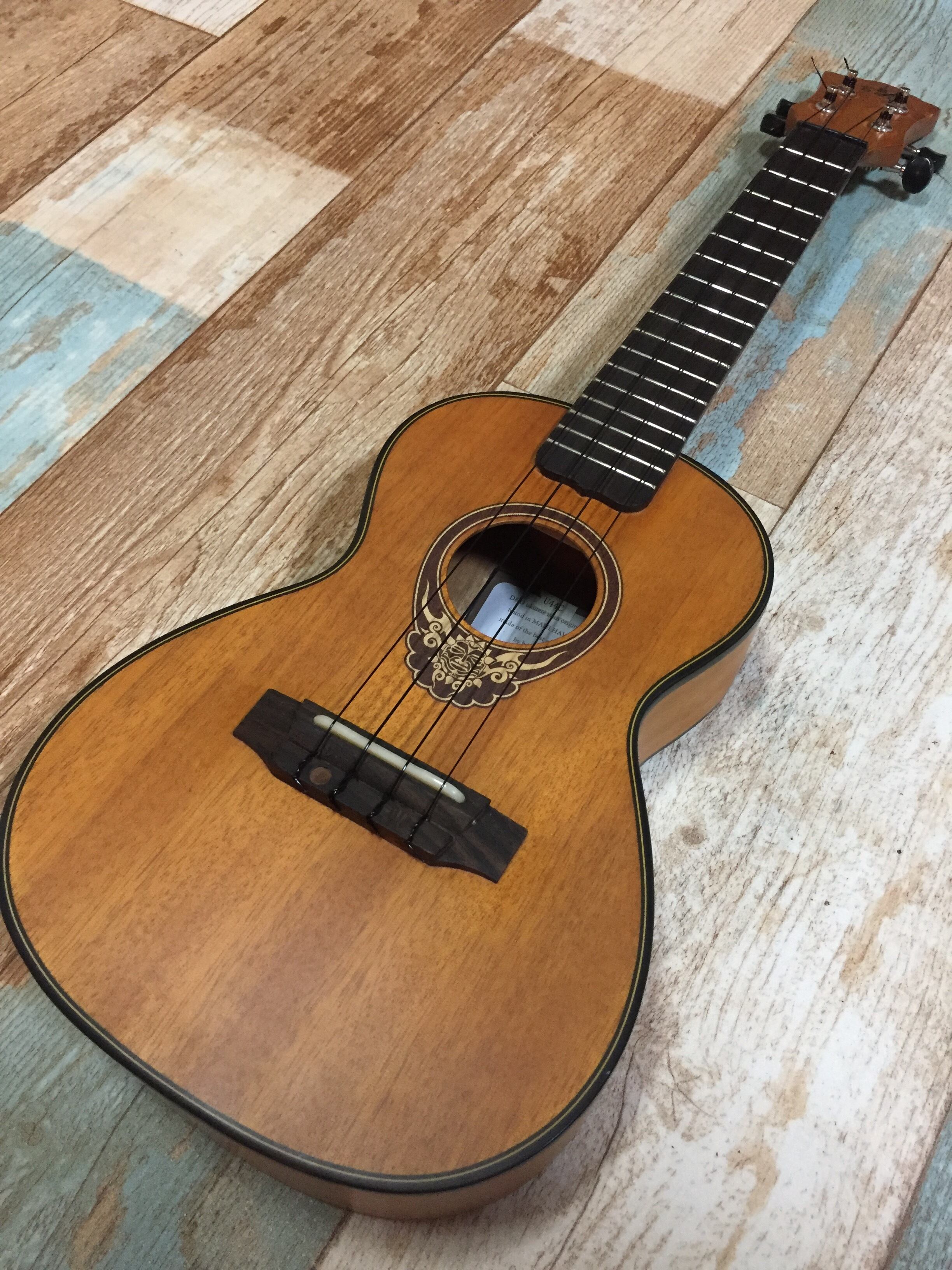 ネックはストレートで、ナットをギリギリまで削って下げ、サドルを無漂白牛骨で作り直し、弦高は12フレットで約2.6mmに仕上げてますので、演奏性は抜群で、全フレット問題なく、ハワイのウクレレにありがちなオクターブピッチのズレもほぼありません。