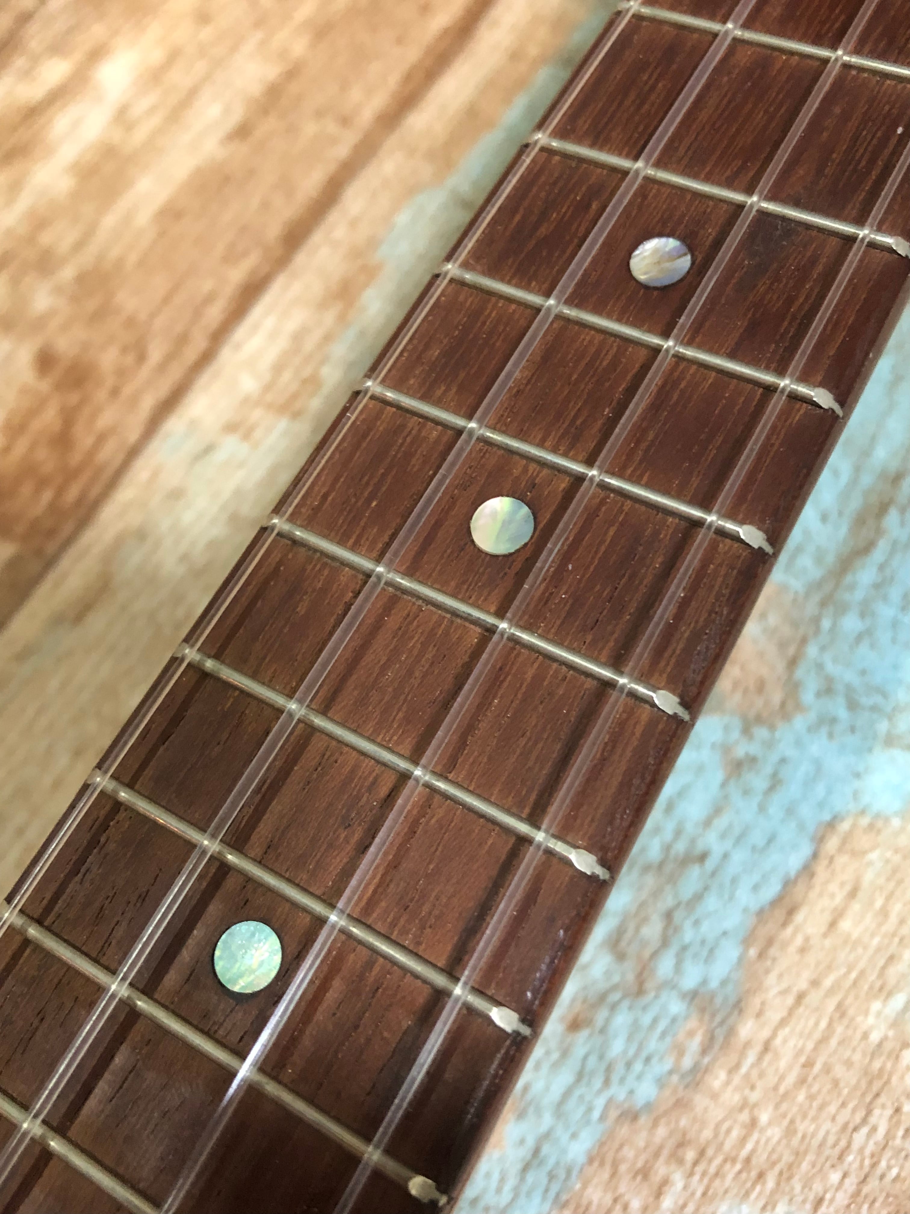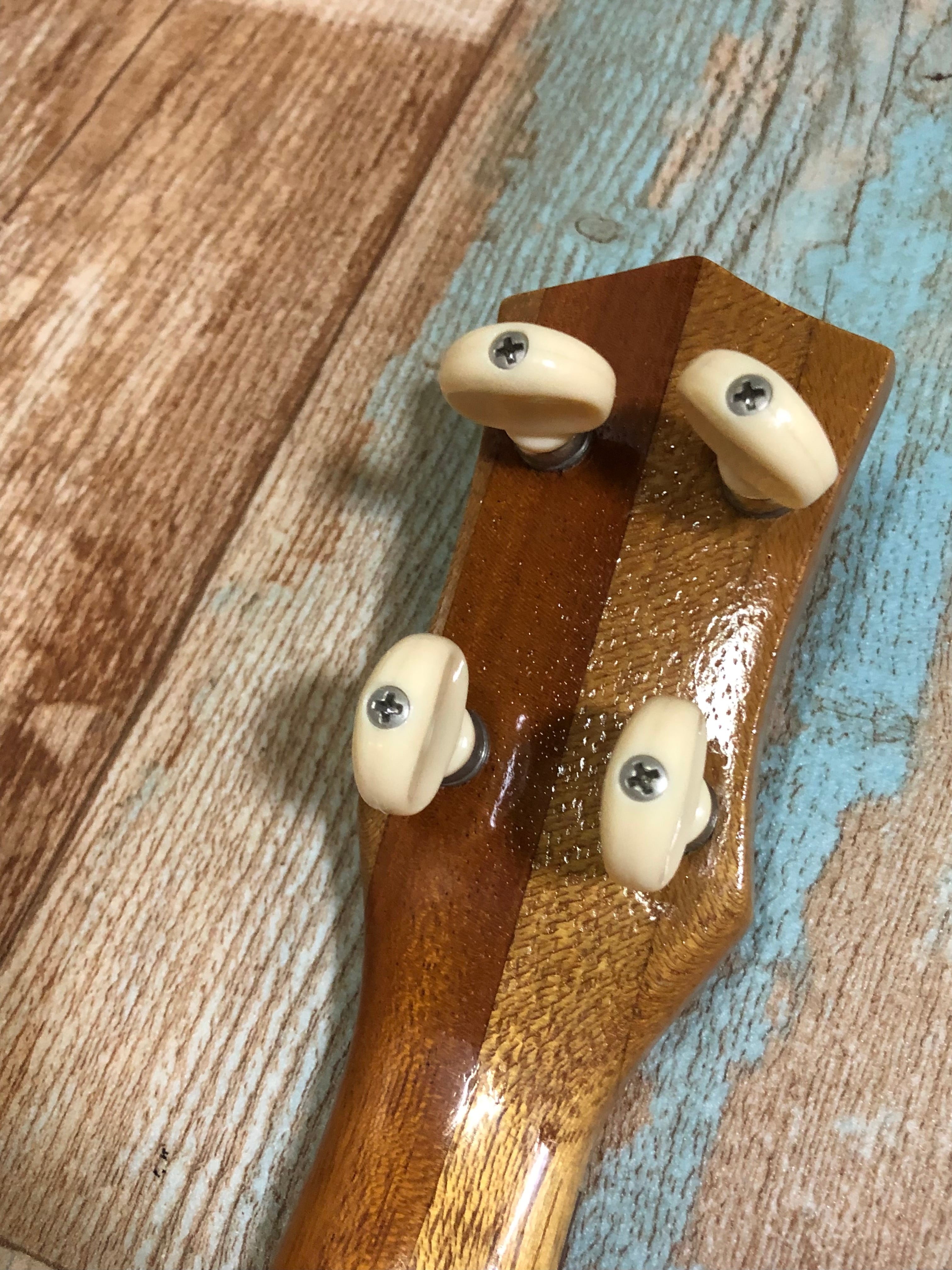 ネックはまっすぐで、ナット及びサドルも削り、弦高は12フレットで4弦2.0mm、1弦1.9mmで、演奏しやすいです。ハワイ製によくありがちなオクターブピッチのズレが少々あります(12フレットで1番ズレてる弦で+20セントほど)
