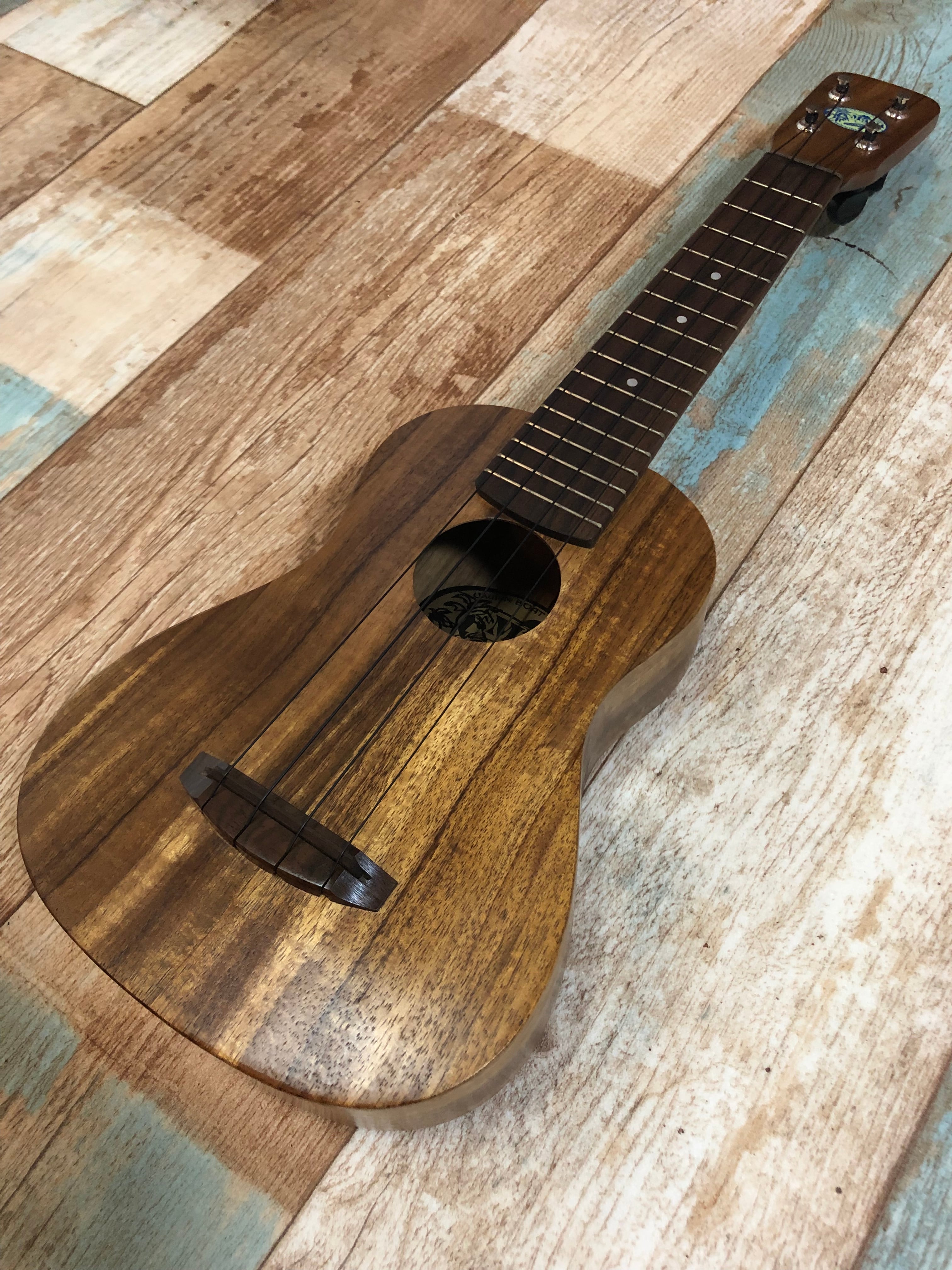こちらの音についてですが、ハワイアンコア特有のアタック音の気持ち良いコロッとしたサウンドが特徴です。ラッカー塗装で、尚且つ10年以上経過し、音に深みも出てきてます。
