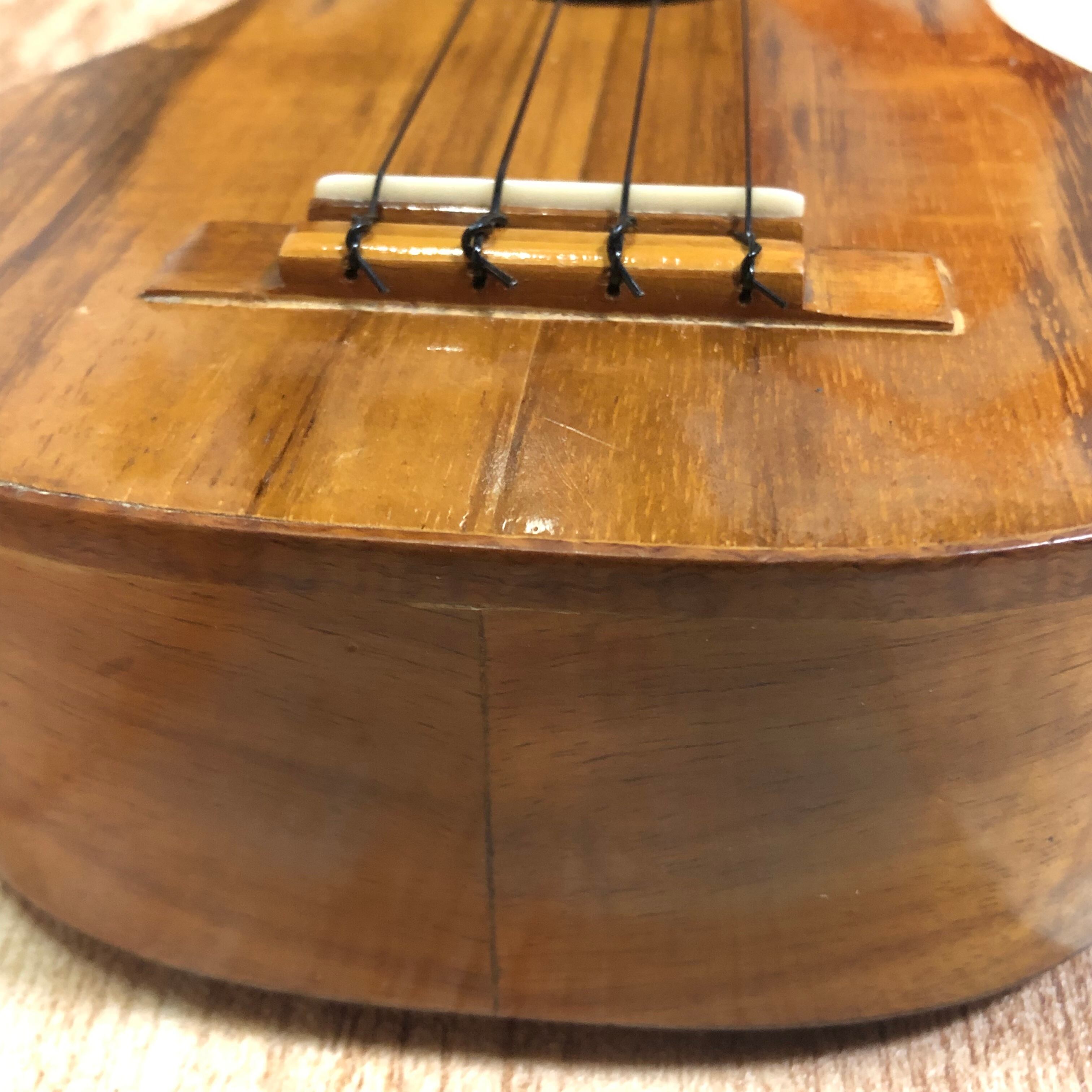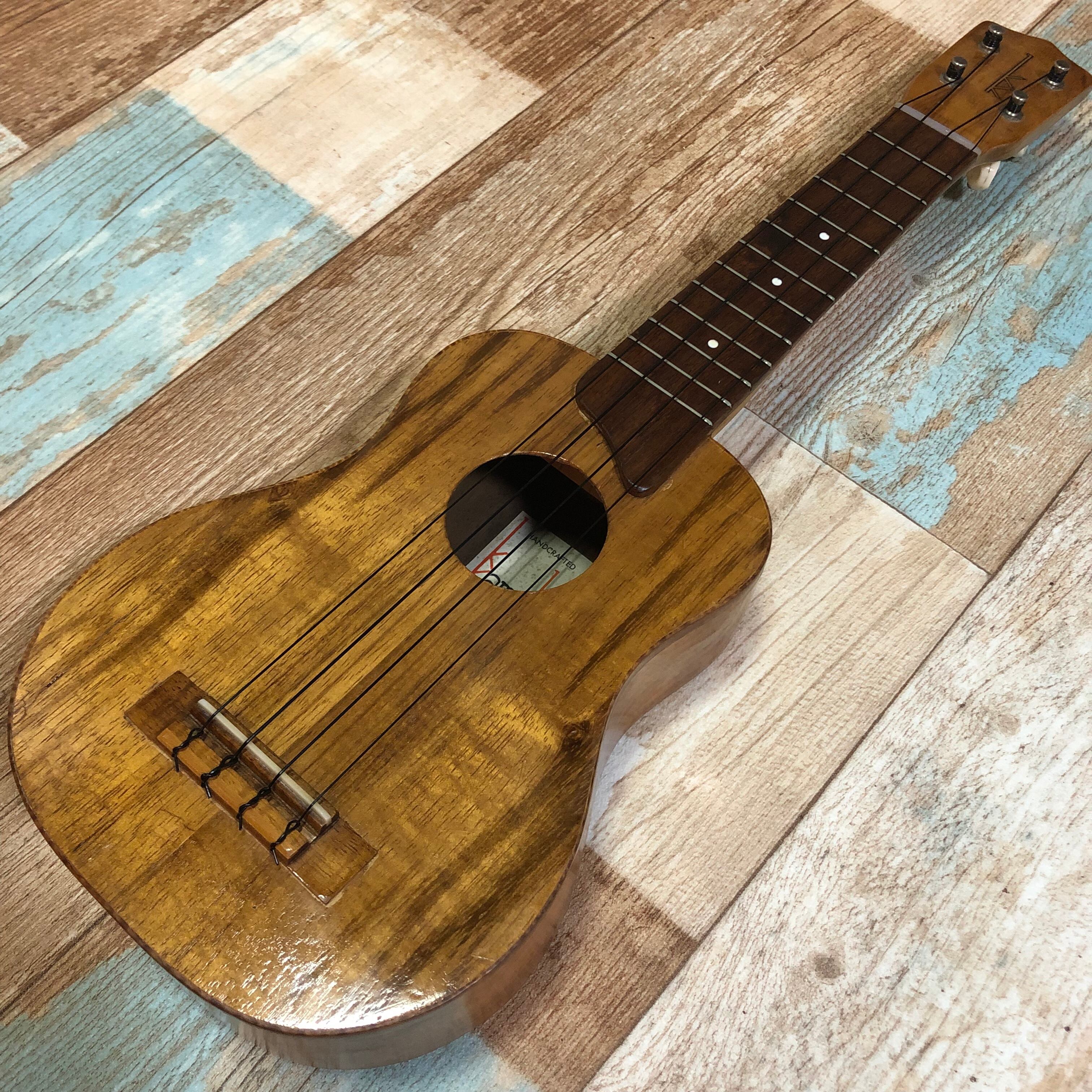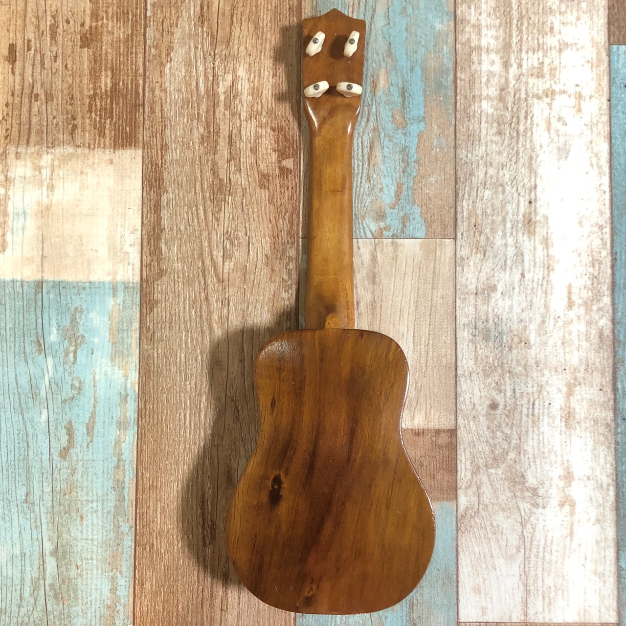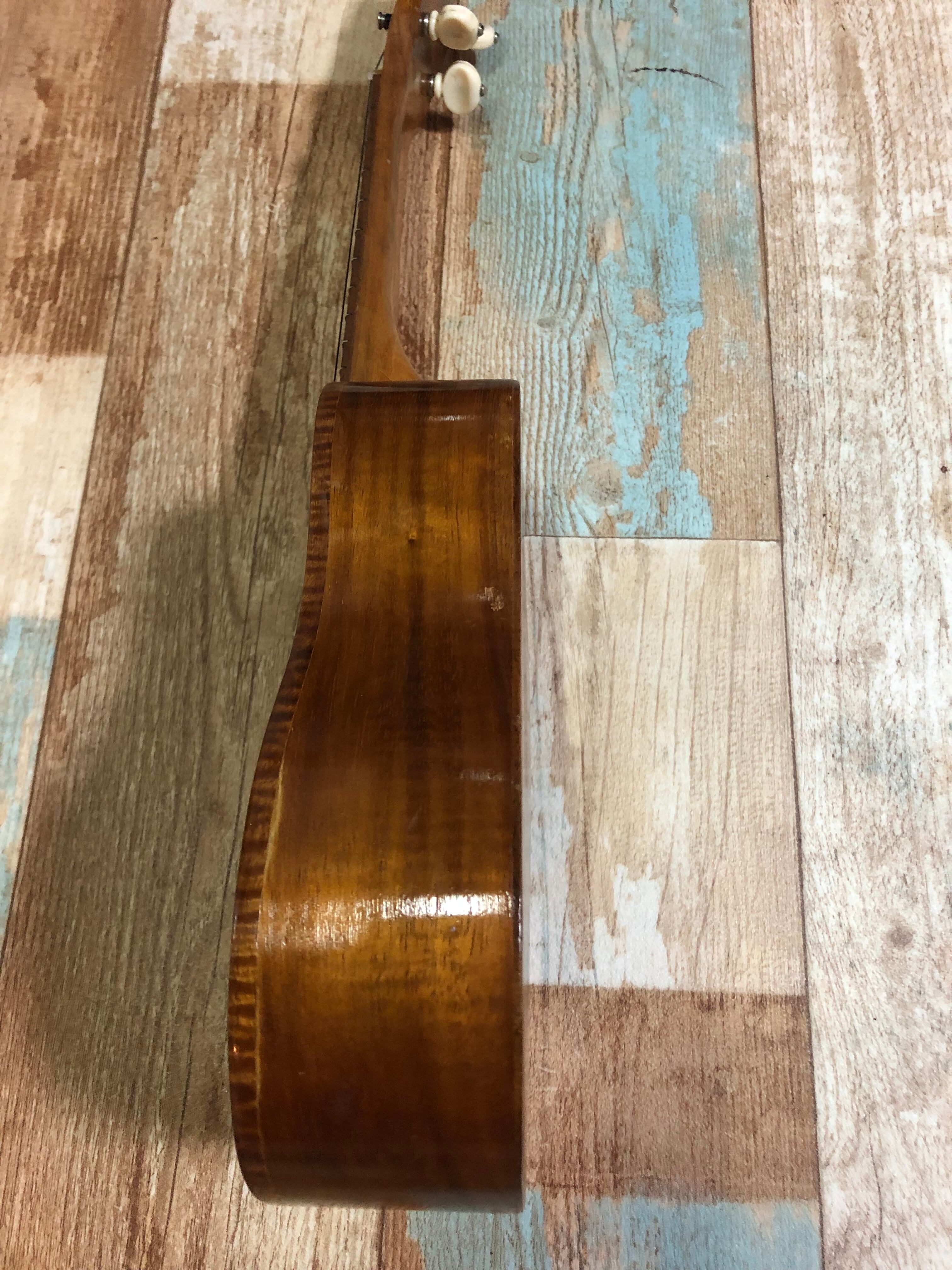 ウクレレの歴史及び人気No.1ブランド「カマカ」のデラックスタイプのソプラノウクレレです。こちらは1973年に作られた物です。Top板の外周に、綺麗な木目のハワイアンコアのバインディングが貼り付けられており、高級感と強度の向上が図られてます。また、ブリッジも通常モデルとは違い、強度と鳴りが向上されているモデルを採用してます。現行のHF-1Dとは少し仕様が異なりますが、現行だと30万円を超えるお値段になってます。