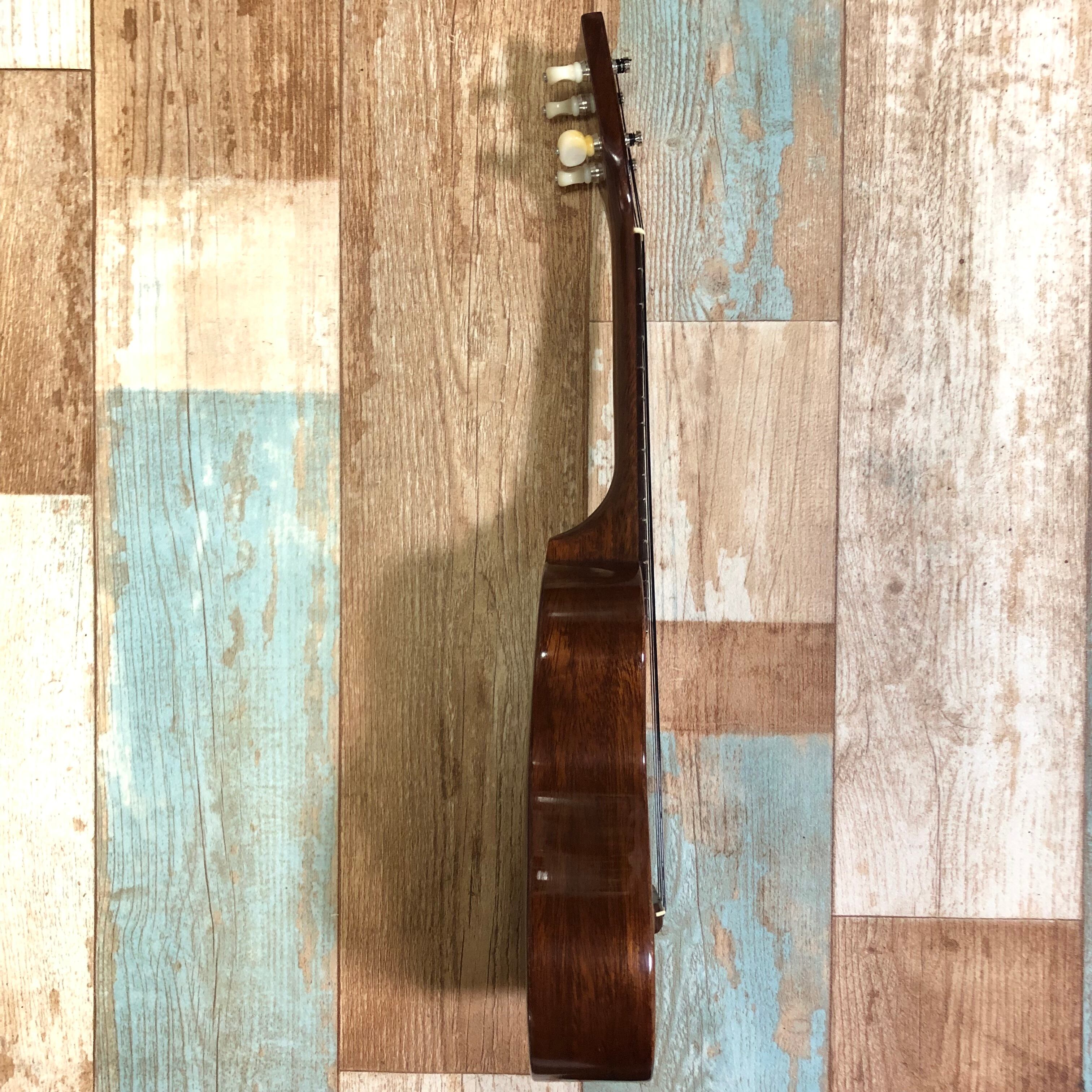 ネックはほぼストレート、ナット・サドルもベストな状態にし、弦高は12フレットで約2.0mmで演奏性は抜群、全フレット問題なく、ハワイ製にありがちなオクターブピッチのズレも演奏上気になる程はありません。