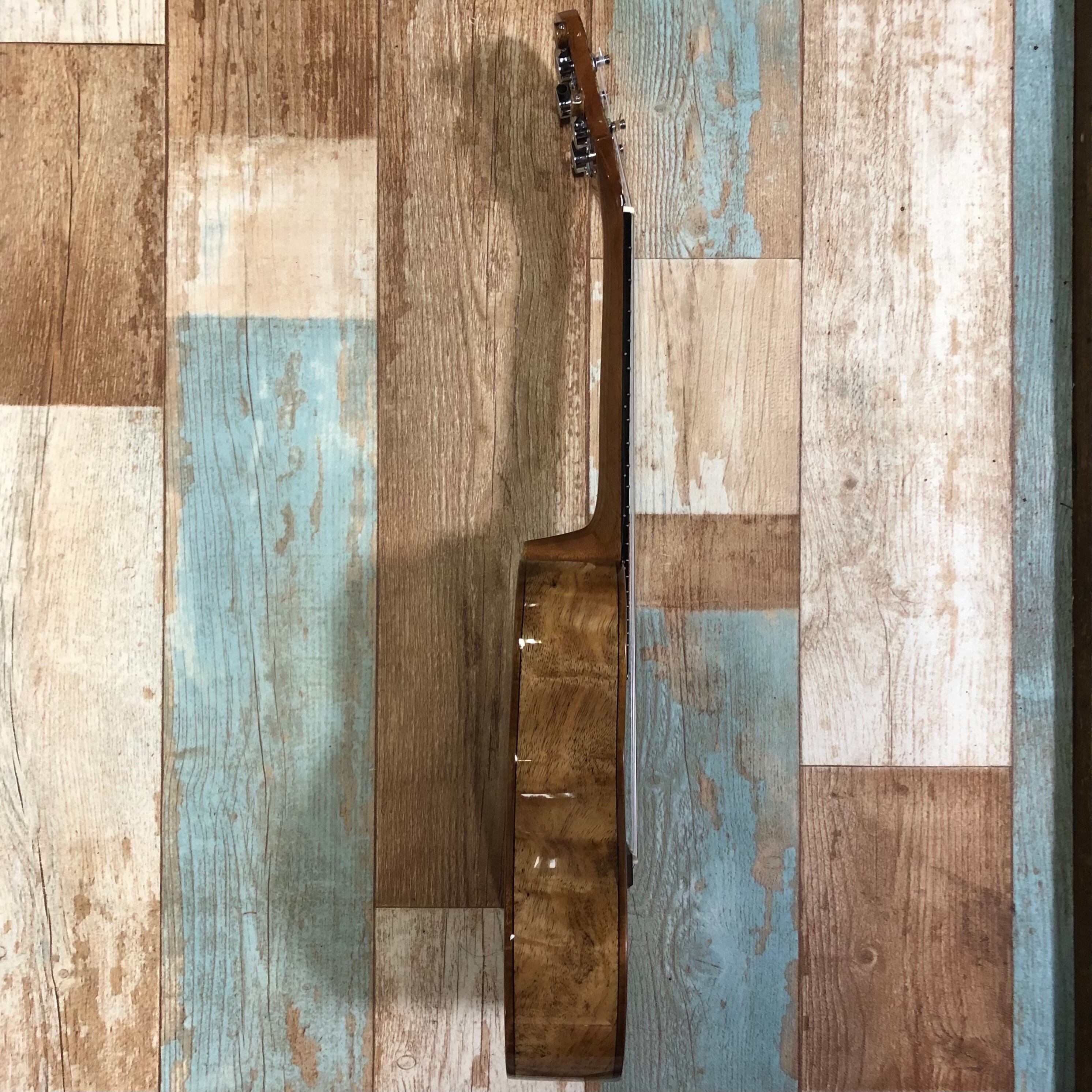 ボディはフレイム杢の入ったハワイアンマンゴーのオール単板です。