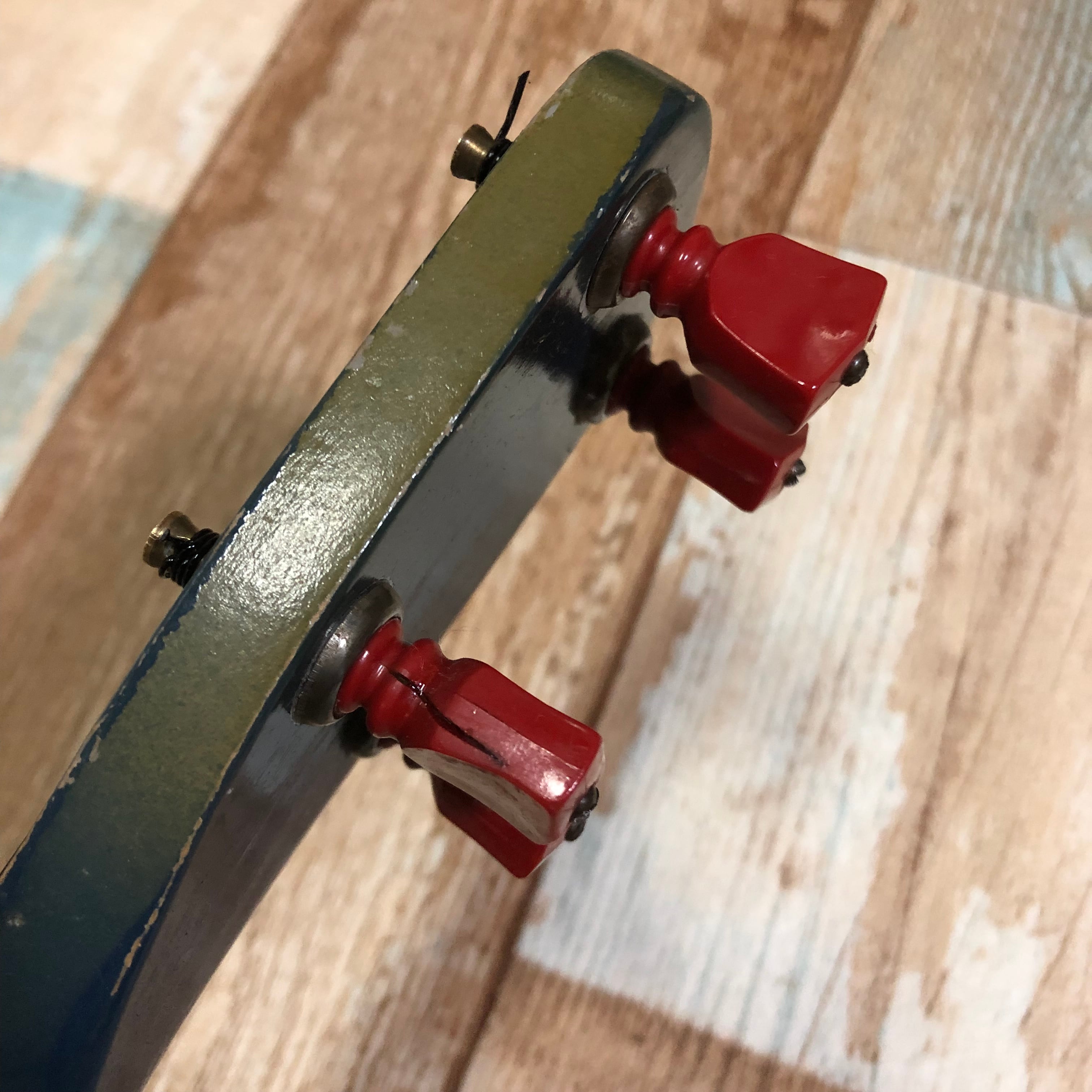 当時の特徴的なアイコンの1つでもある赤ノブのブラス製フリクションペグも健在です。1つだけ写真の通りノブにヒビが入ってますが、現状問題なく使用できております。