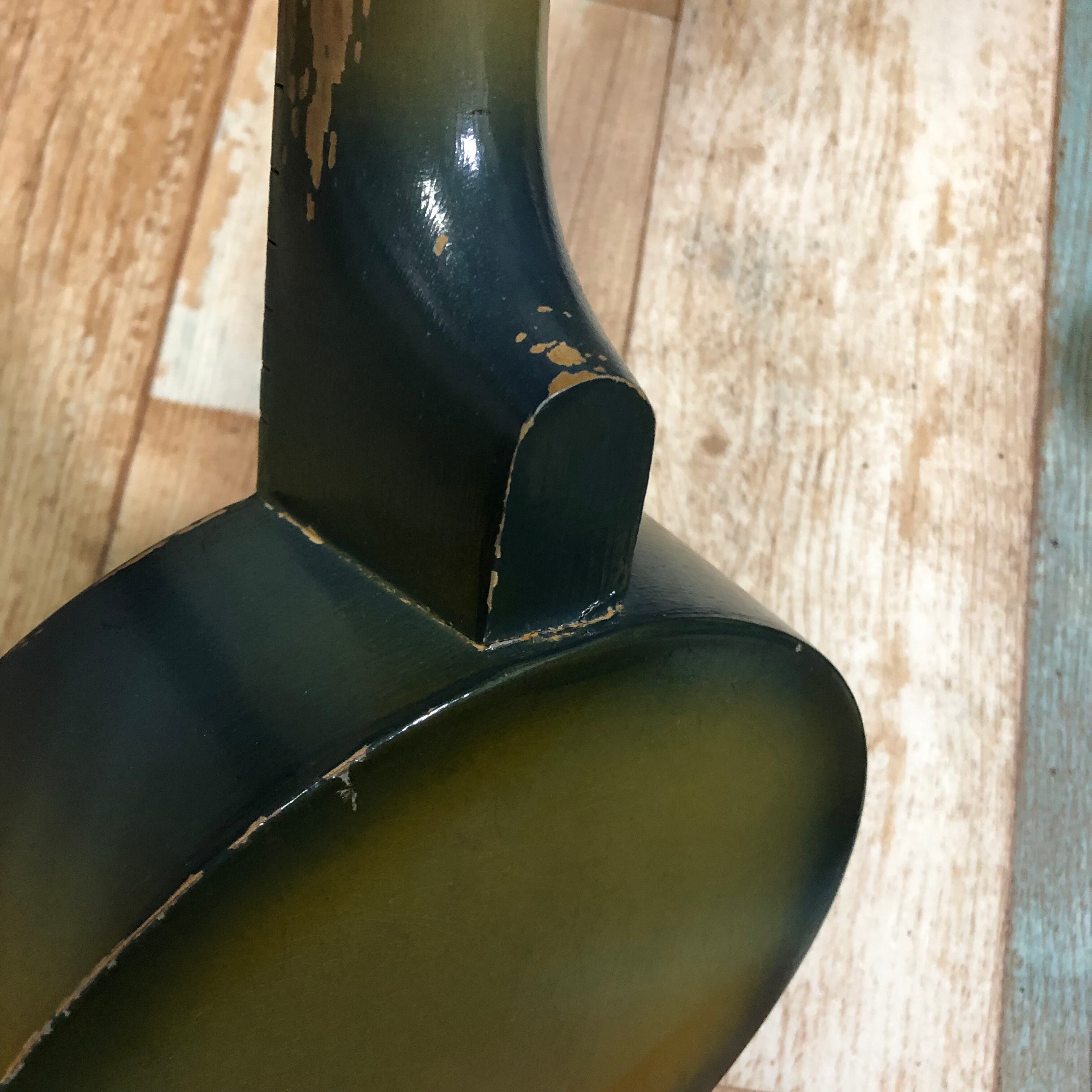 kamakaなどのウクレレと同様、柔らかく響きを遮りにくいラッカー塗装の為、特有のウェザーチェックや塗装剥がれが多数ありますが、ヴィンテージ特有のものと捉えていただければと思います。ボディのバックにカードかステッカーによる日焼けの痕がありますので写真でご確認下さい。