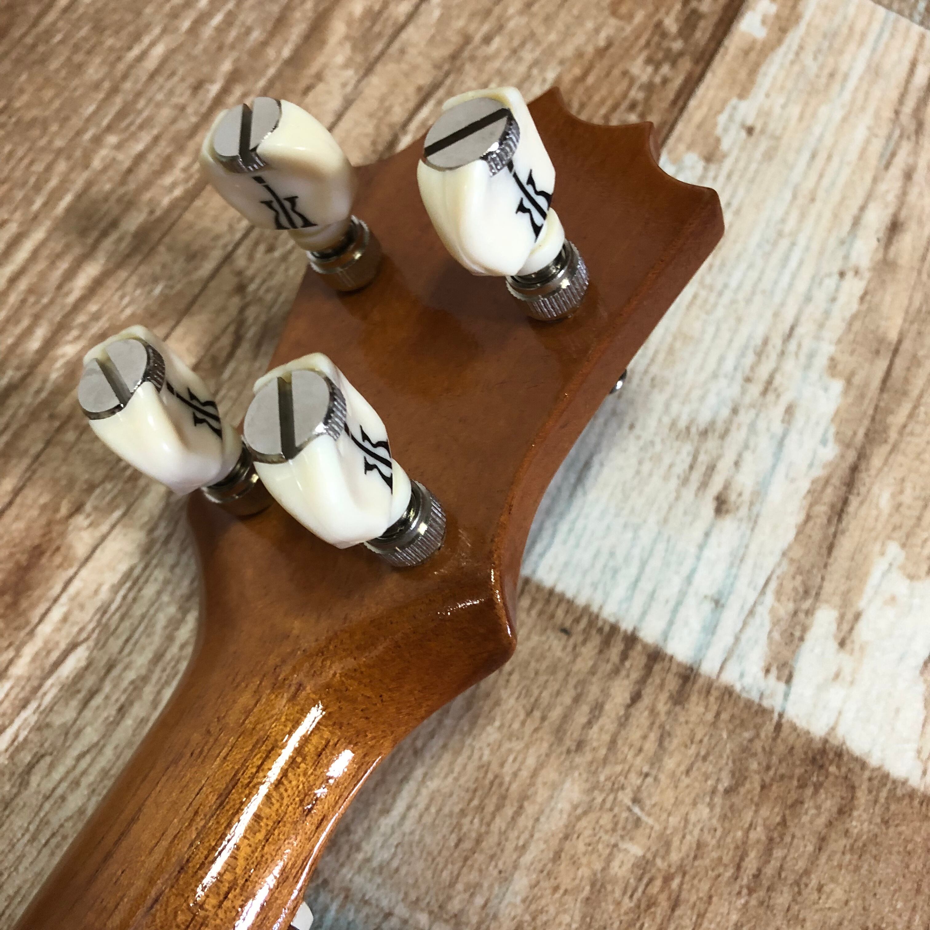 またご購入から1年以内に、木部の剥がれ、ネックの反りやナットの溝やフレットの浮きによる音のビビリ、フレットサイドのバリが出てきた場合、当方で工賃無料で修理を行います。(往復送料はご負担願います)(木材や塗装の割れや欠けやひび、ペグの故障や弦や金属部の消耗は対象外です。湿度45~55%、気温40℃以下で保管して下さい)