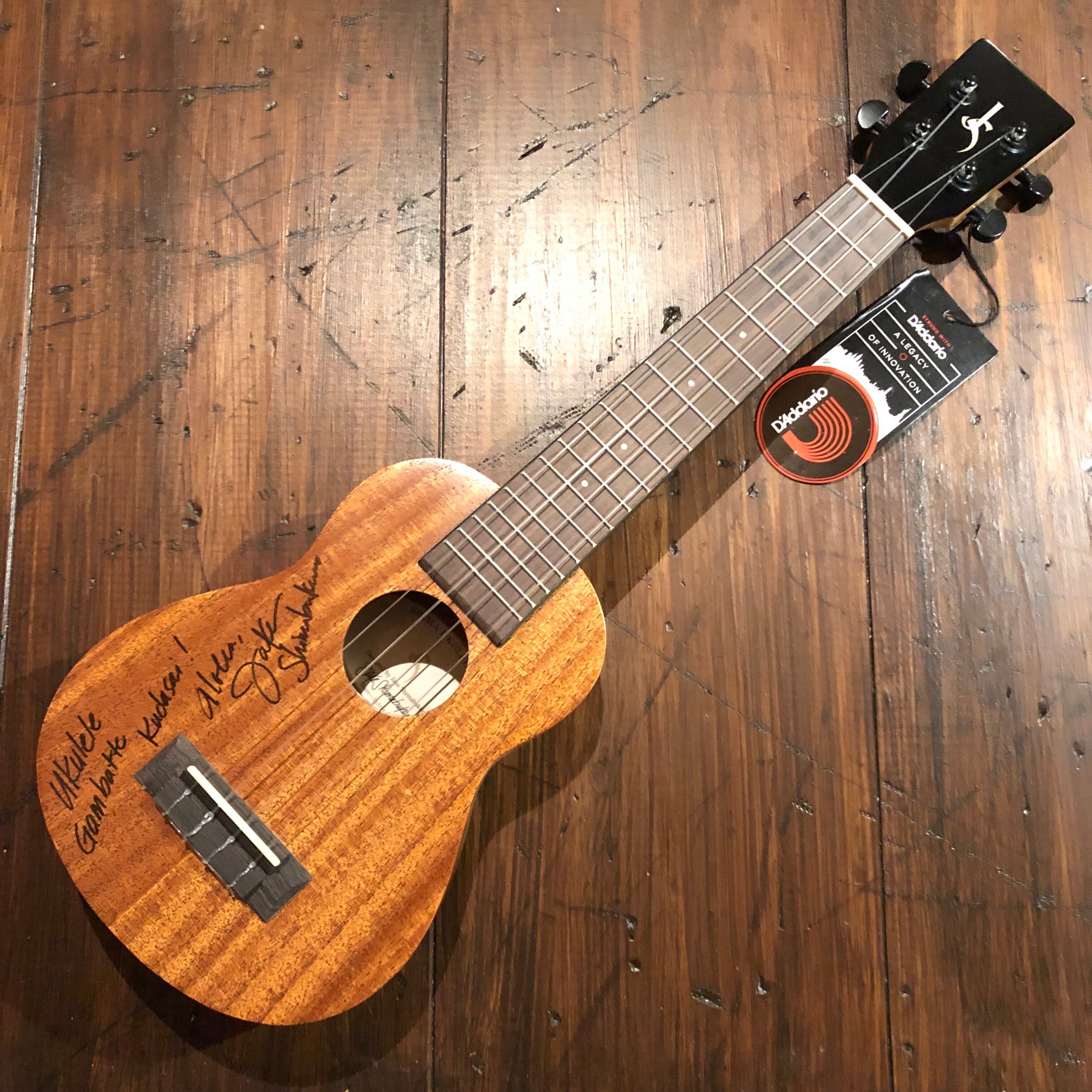 こちらは、Jake Shimabukuro氏本人に特別に直筆サインとメッセージを書いて頂いた1本限りのお宝モデルです。