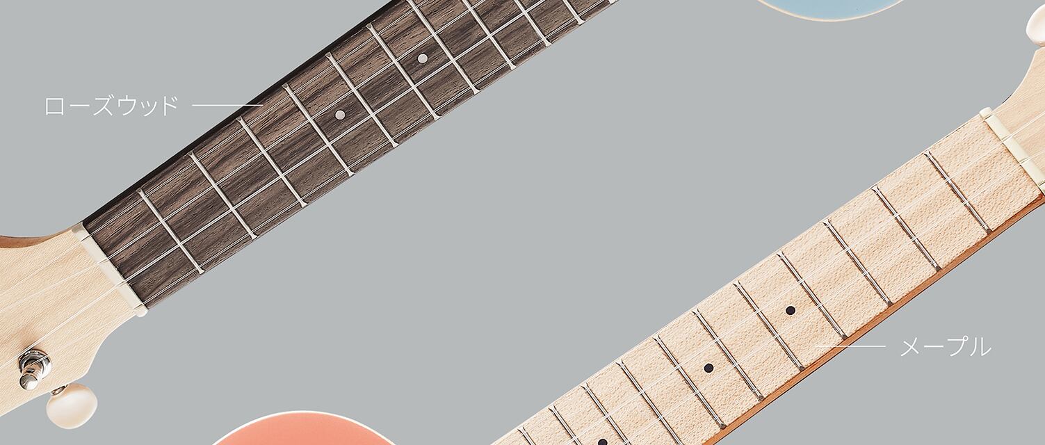 ウクレレでは珍しい、指板に緩やかなカーブ(アール)を付けており、運指も非常に楽です。