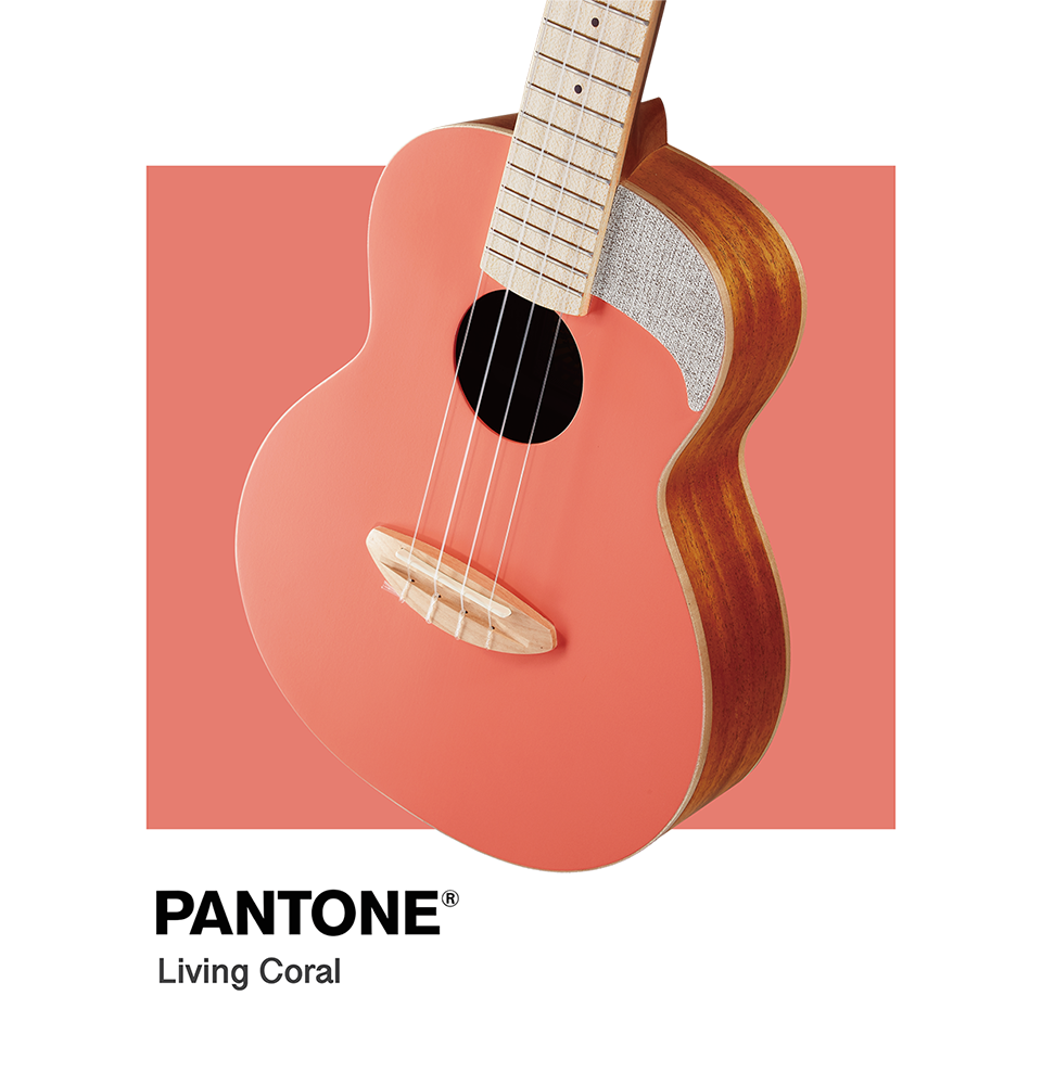 こちらはPOPなカラーリングにピックガードを装着し、ソリッドスプルーストップによる豊かな鳴りが特徴のウクレレです。