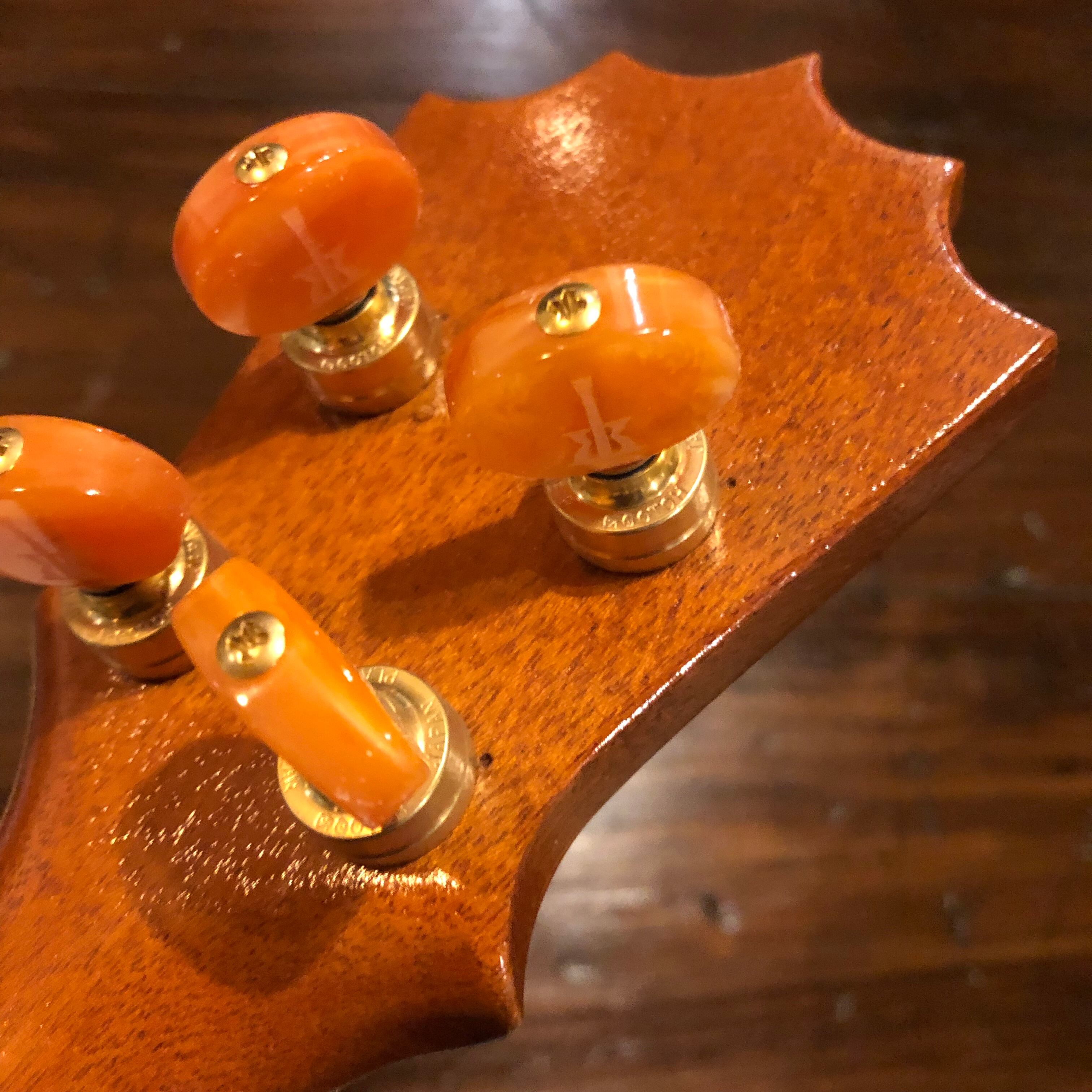 ペグ(糸巻)は、日本製のGotohのプラナタリーチューンに交換されてます。ペグのつまみはコアロハのものが使われております。