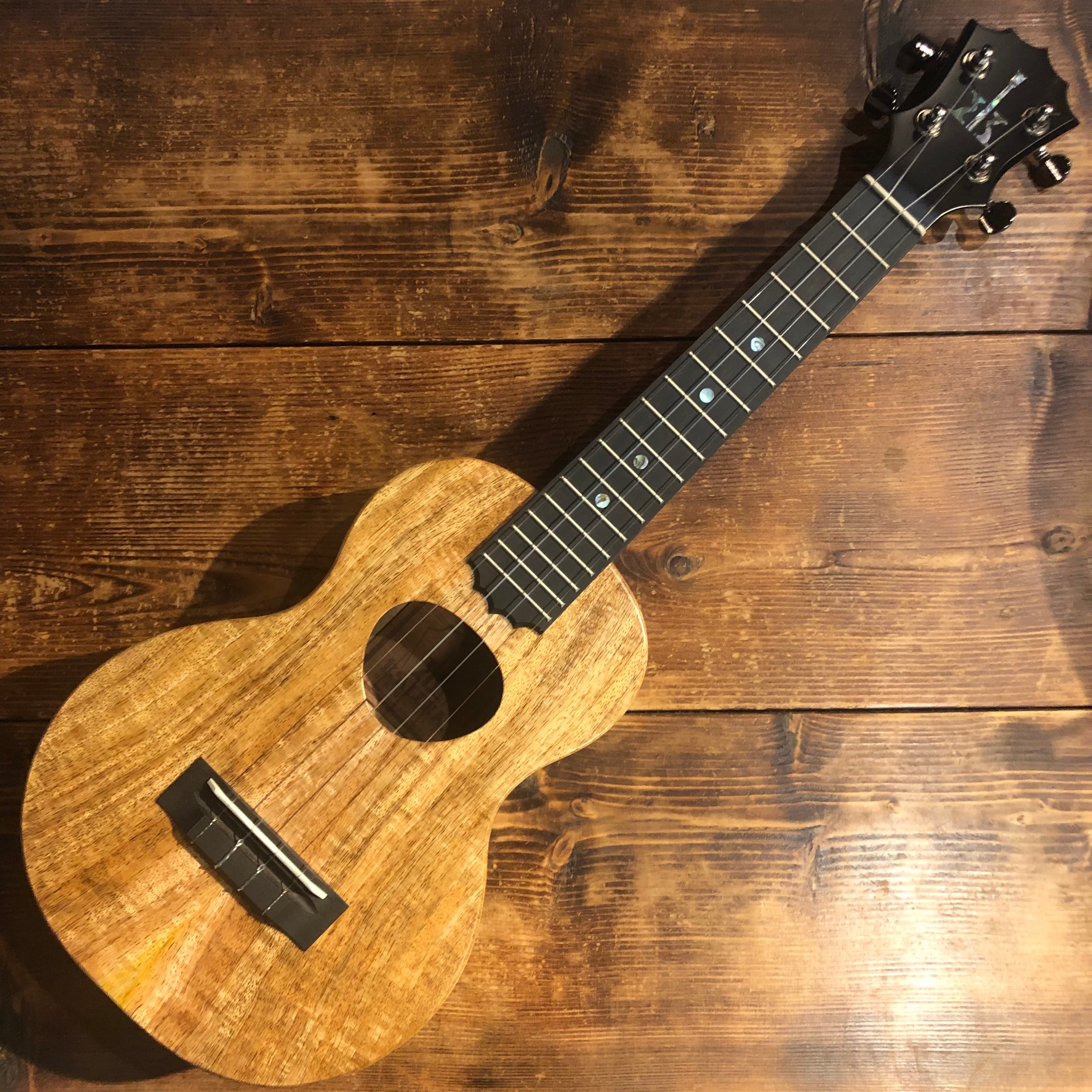 Royal Mangoシリーズはボディ材にハワイ産マンゴーを使用し、スムーズで美しいサテン仕上げが特徴。エボニーへッドストックにアバロンインレイ、指板エンドにクラウン型デザインを採用。KoAlohaの伝統と新たなイメージが見事に融合した上級モデルです。ハワイ ホノルルファクトリーで作られております。