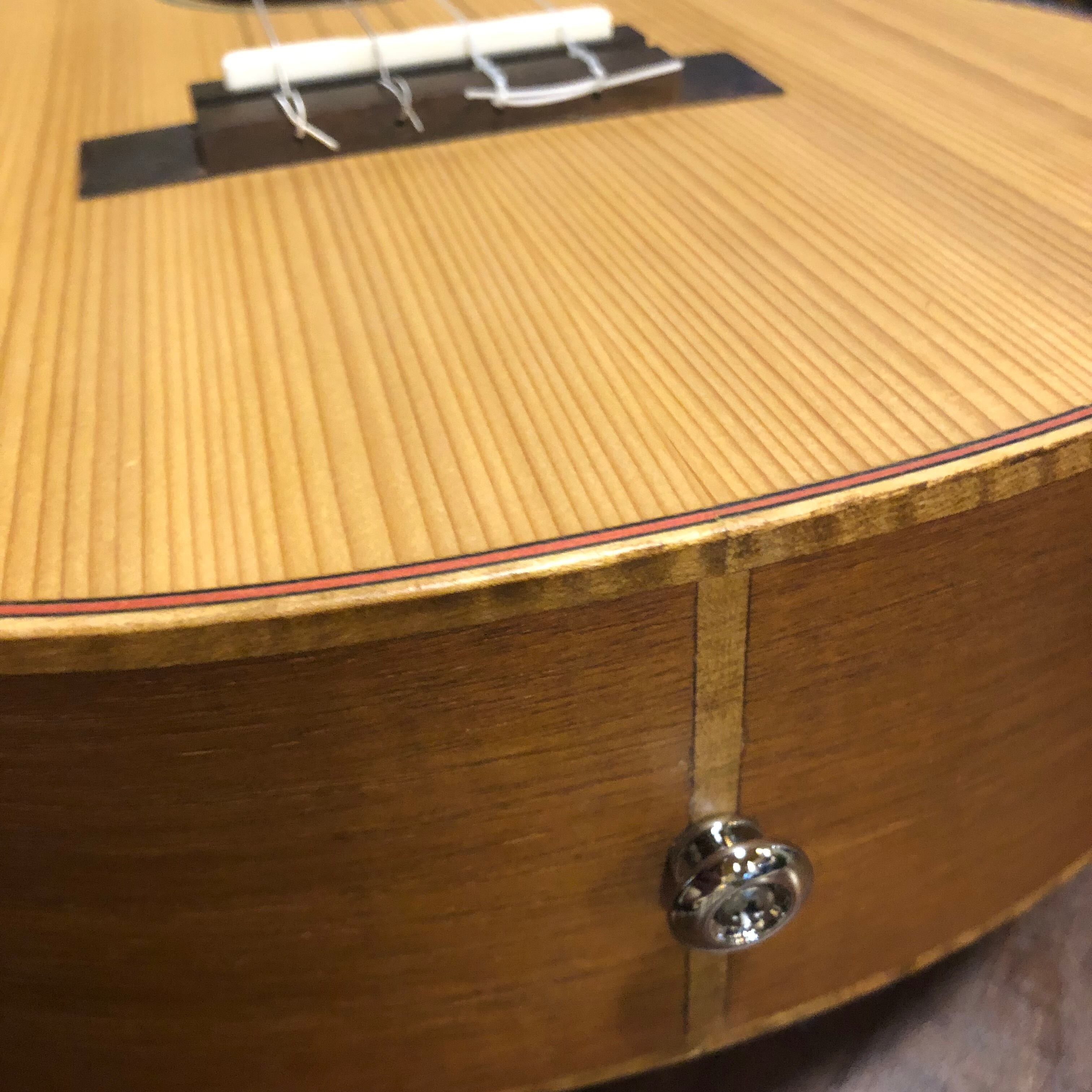 ソリッドレッドシダートップ、ソリッドマホガニーサイドバック、アマラエボニー指板とブリッジを使用し、素早いレスポンスと深みのあるサウンドを実現。