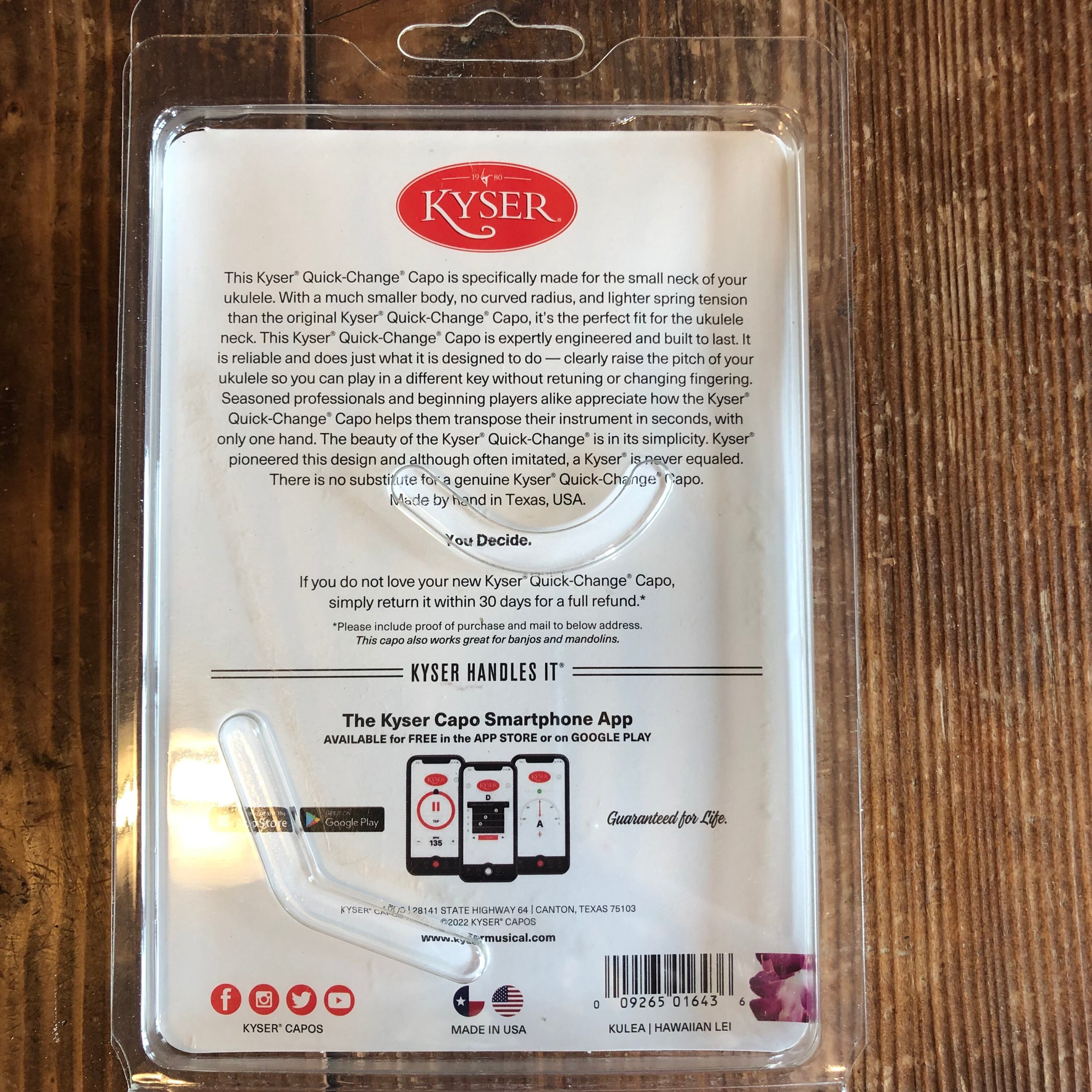 こちらの商品は、ウクレレやバンジョー、マンドリンなど、細いネックの弦楽器に合わせてデザインされ、指板を抑える部分には湾曲がない為、ギター用と違い、指板が平らなウクレレには全弦バランスよく抑えることができるQuick-Change® です。専門的に設計され、長持ちするように作られています。信頼性が高く、設計どおりの動作をします。バンジョー、ウクレレ、マンドリンのピッチを明らかに良くし、チューニングをし直したり運指を変更したりせずに、別のキーで演奏できます。ベテランのプロも初心者のプレイヤーも、Kyser Quick-Change" カポが片手だけで数秒で楽器の移調に役立つことを高く評価しています。