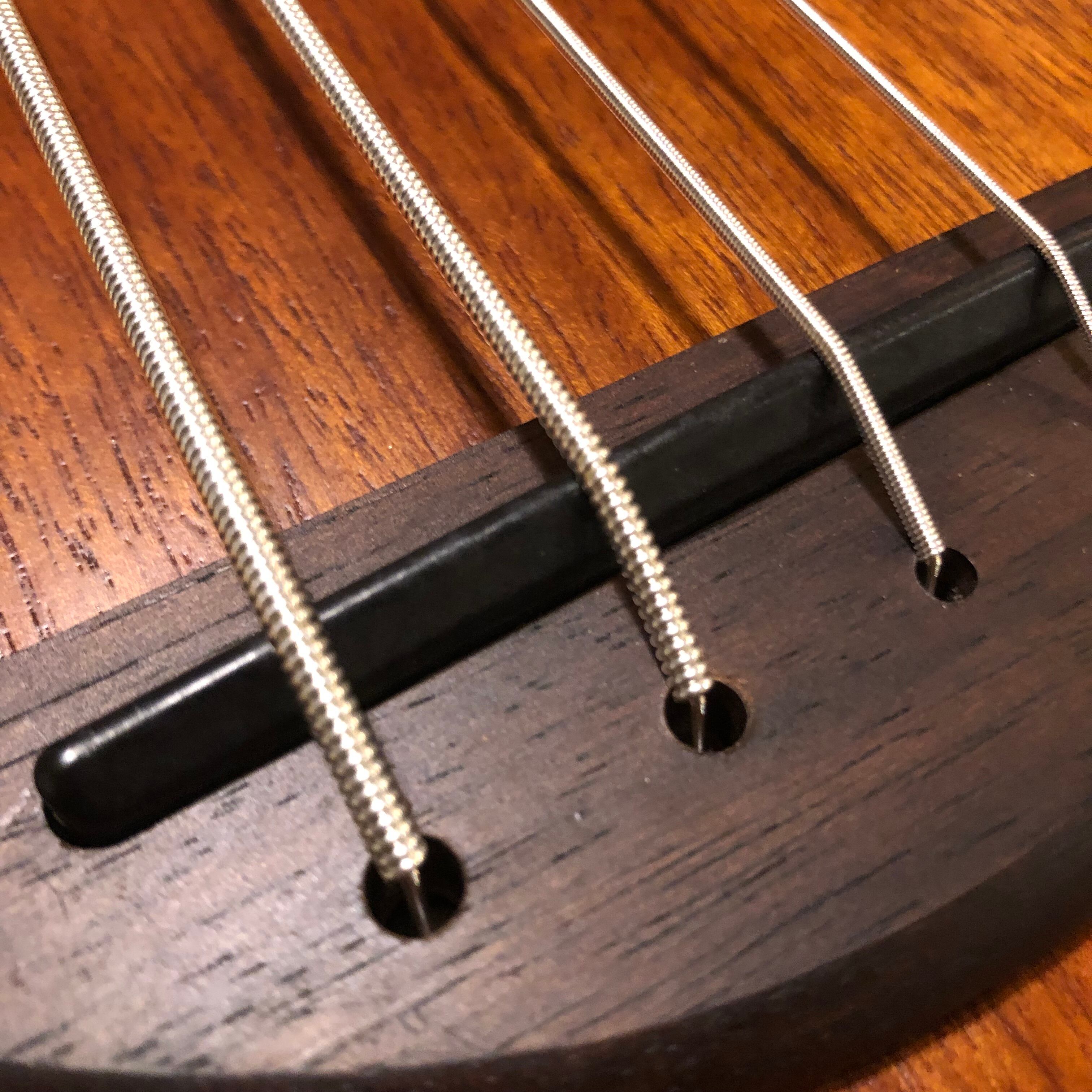 このユニークなベース弦セットは、銀メッキの巻線を備えたナイロンコアで構成されています。これらのラウンドワウンド弦は、U-Bass の特徴である温かみのあるトーンを提供します。弦はプレイヤーに最高の演奏性と正確なイントネーションを提供します。従来のエレキベース弦と比べて張力が低いため、感触が良く、指に優しいのが特徴です。