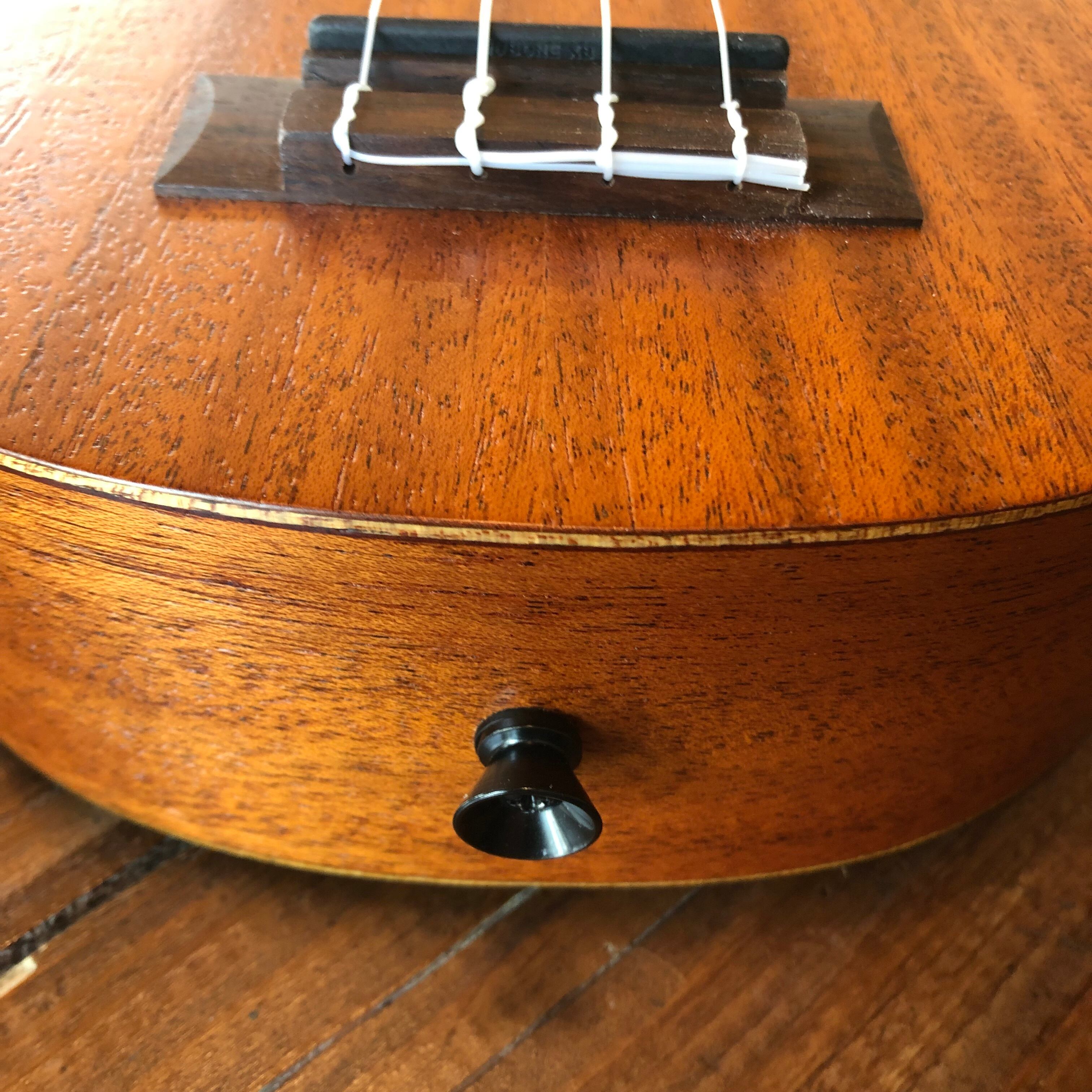 定番のマホガニーシリーズ、KA-15シリーズのサウンドホールに日本で受けの良い和柄を施し、ペグのノブをブラックにし、ナット・サドルにはGraphtechのNUBONE XBを採用したスポット品です。