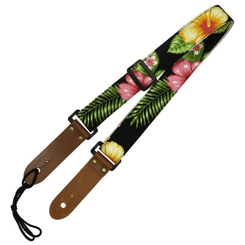 ストラップピンタイプのウクレレストラップ。ハイビスカス柄。