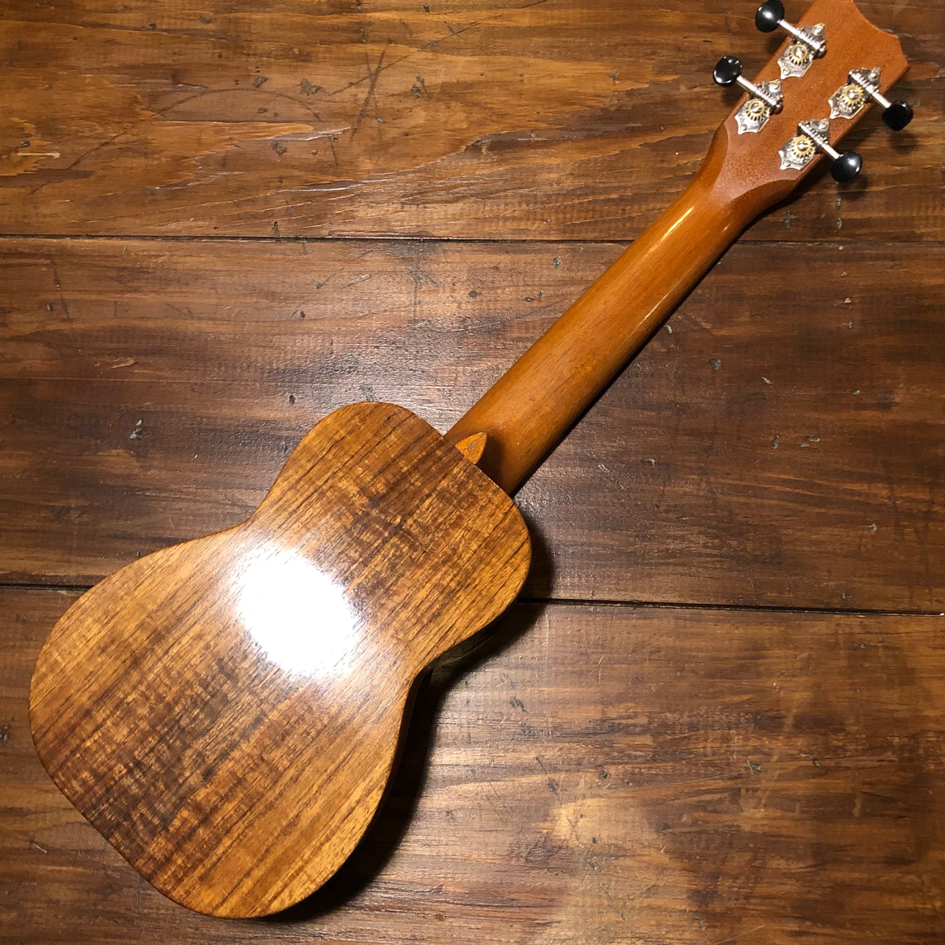 こちらのウクレレは、2017年に製造されたモデルで、エボニー指板&ブリッジによる立ち上がりの良いサウンドです。ボディのハワイアンコアもフレイムが全体的にうっすらと入った、グレードの高い木材を使用してくれております。