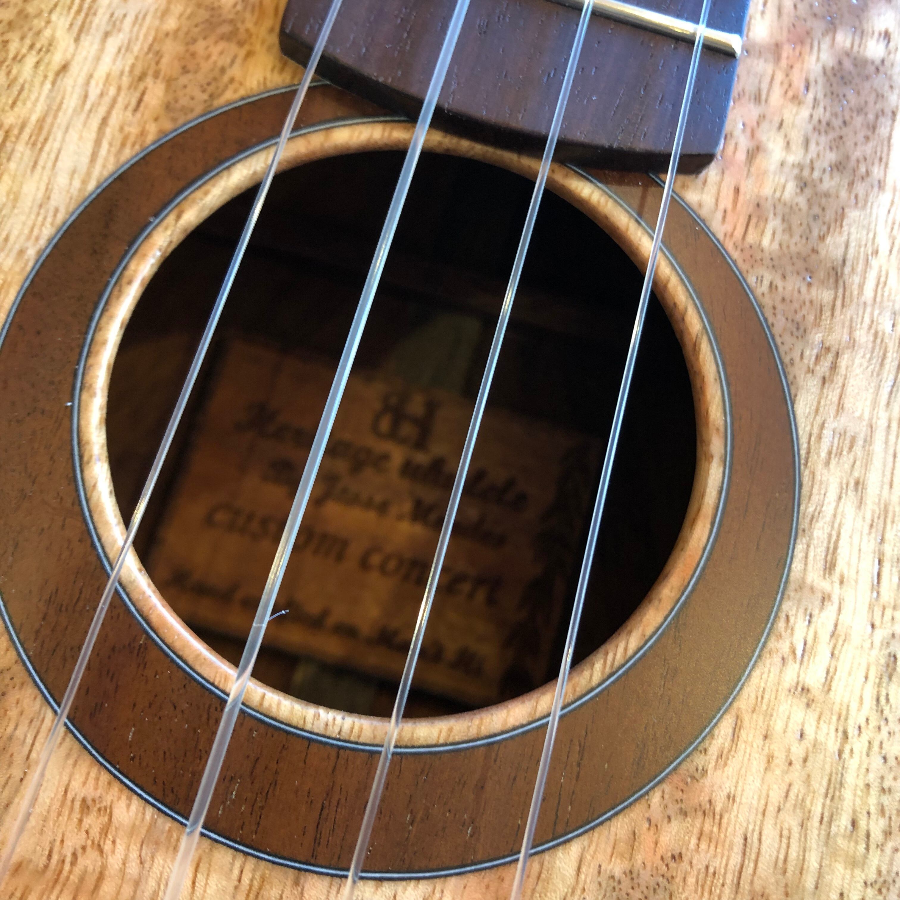 (サウンドホール周りの装飾)にはハワイアンミロを使用という、ハワイの木材を使用した素敵なウクレレです。