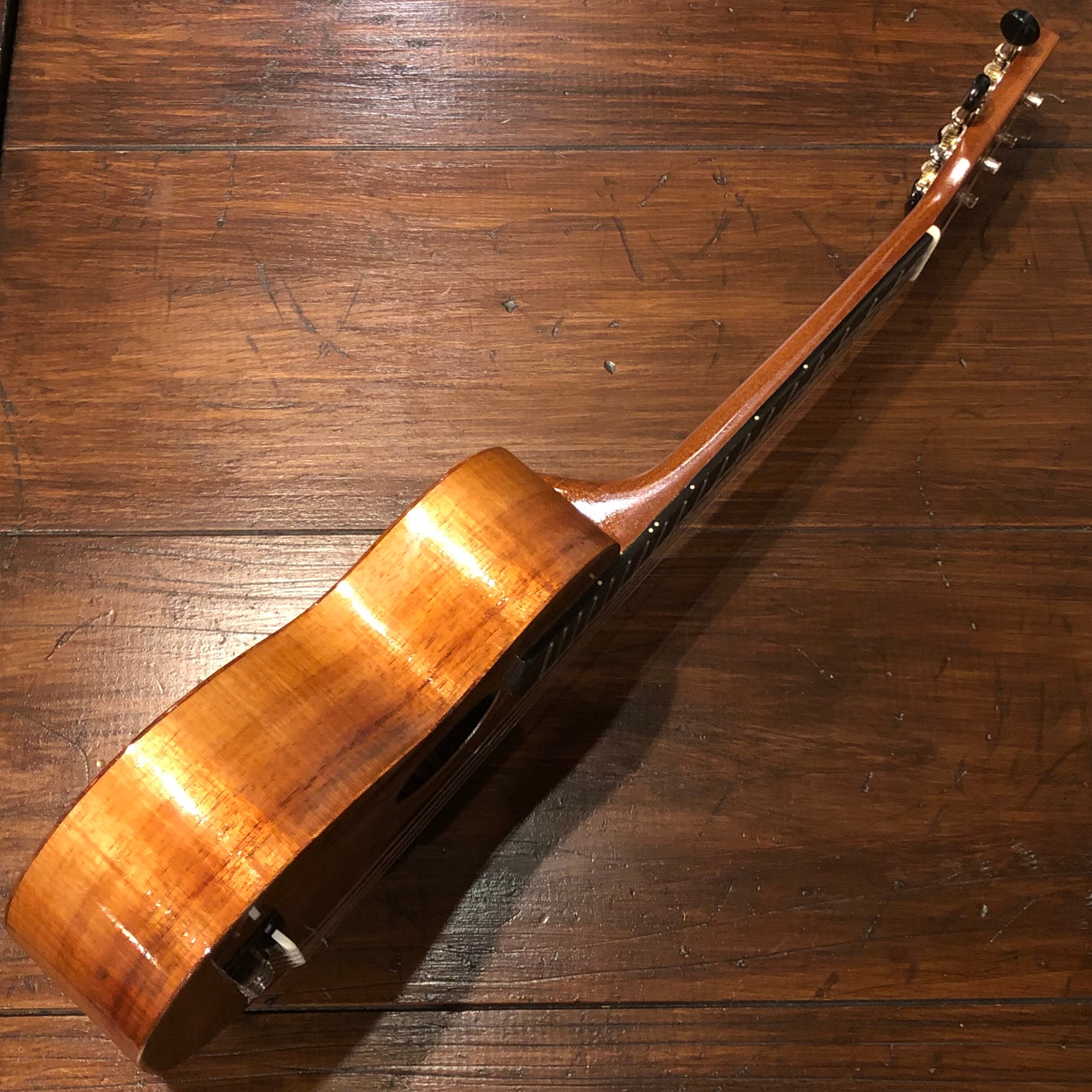 こちらはオールハワイアンコア単板で作られたソプラノウクレレのロングネック仕様です。弦の長さをコンサートウクレレと同じ長さのロングネックにする事により、音量、音質、演奏性が格段にUPしてます。