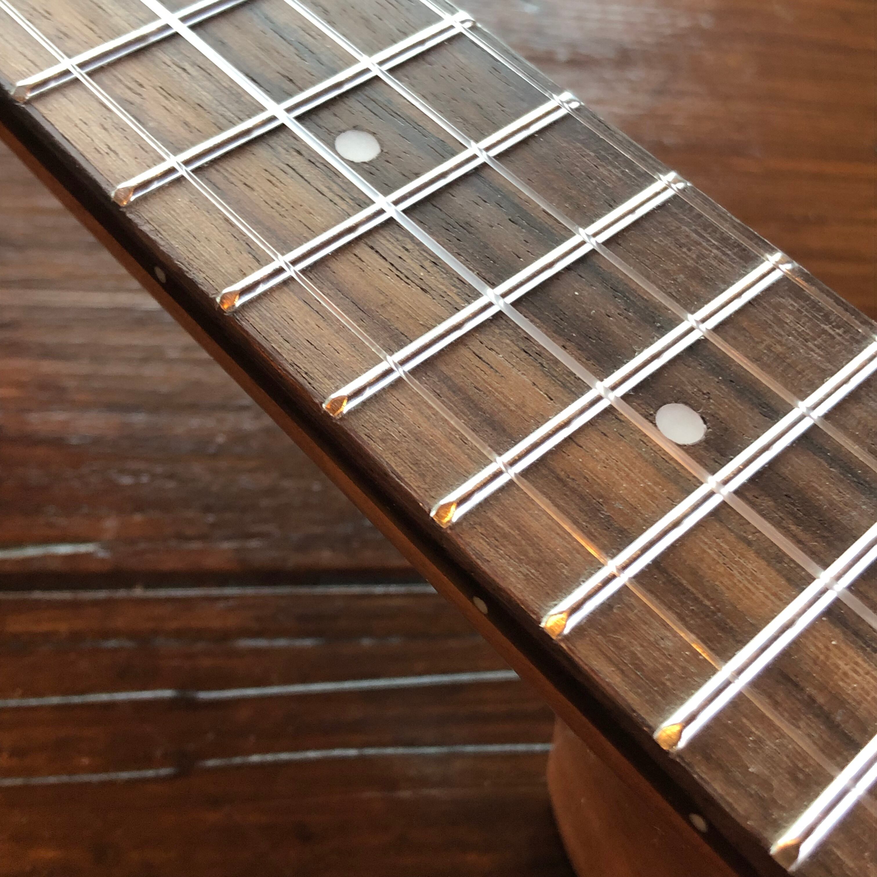 当店で、ナット、フレット、サドルの調整を施し、演奏性と音程の改善を図っております。
