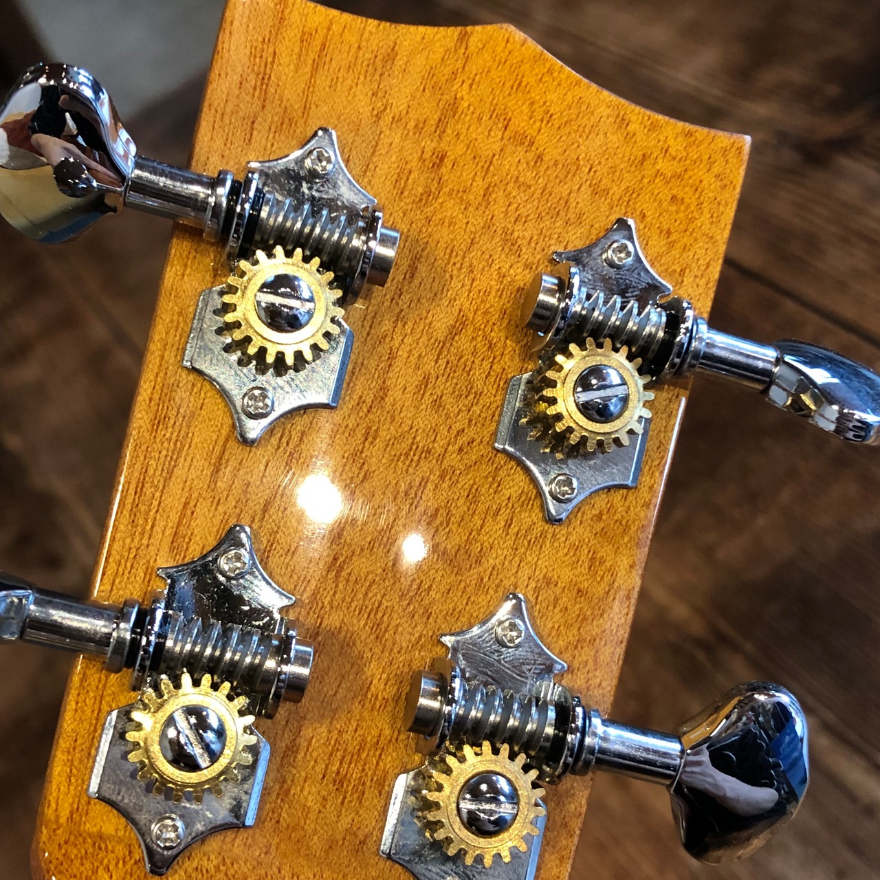 当店入荷後に、ナット、フレット、サドル等を加工し、弦を巻き直し、糸巻きが硬い場合はグリスを塗布し、演奏性・音程・音質・弦の耐久性・音の伸び・チューニングの安定性などを向上させてから発送いたします。
